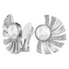 Traveller Ohrclip - Silberfarben - Perle - 8mm - Weiß - Kristalle - Platiniert - Halbe Sonne - 20x15mm
