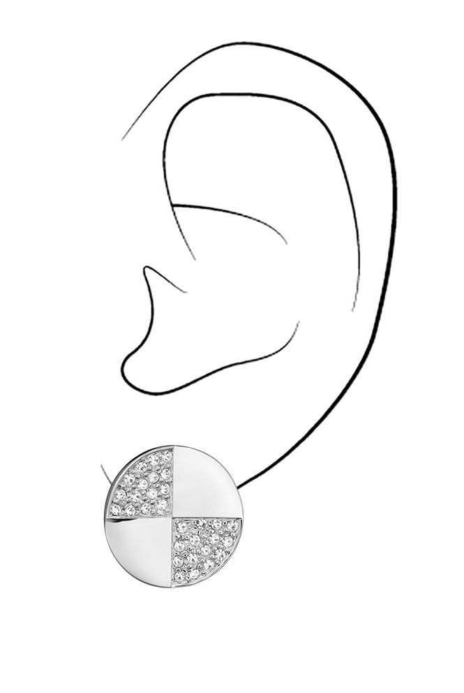 Ein elegantes Design mit funkelnden Kristallen. Diese platinierten Clips von Traveller in runder Form sind in vier Fächer unterteilt. Zwei davon sind mit Preciosa Kristallen besetzt. Die Ohrringe haben einen Durchmesser von 17 Millimetern und wiegen jeweils 3,5 Gramm. Dank des einzigartigen Verschlusssystems von Traveller sind diese Clips sehr bequem, leicht und sicher zu tragen.