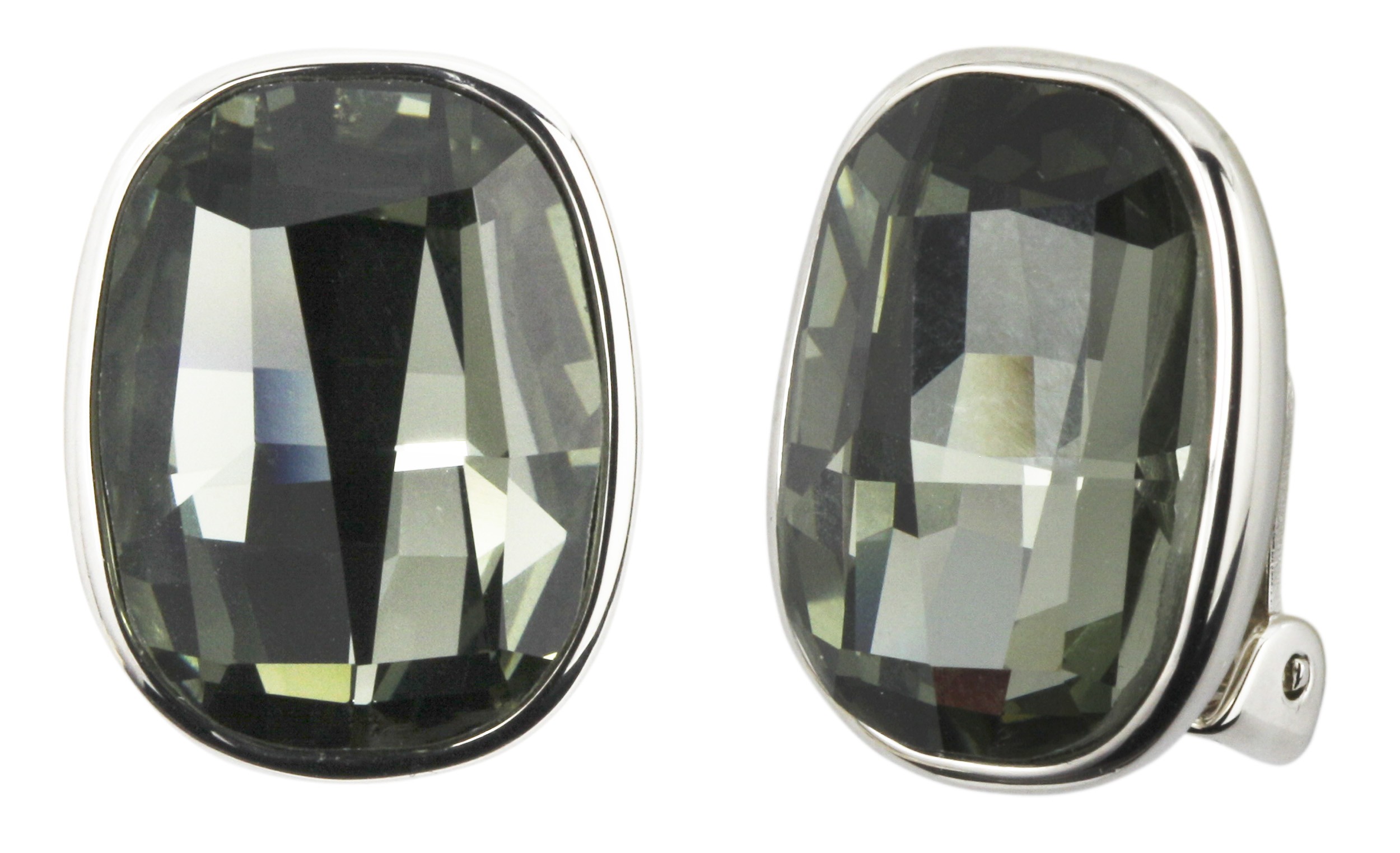 Traveller Ohrclip - Silberfarben - Swarovski Kristalle - Grau - Platiniert - 21x17 mm