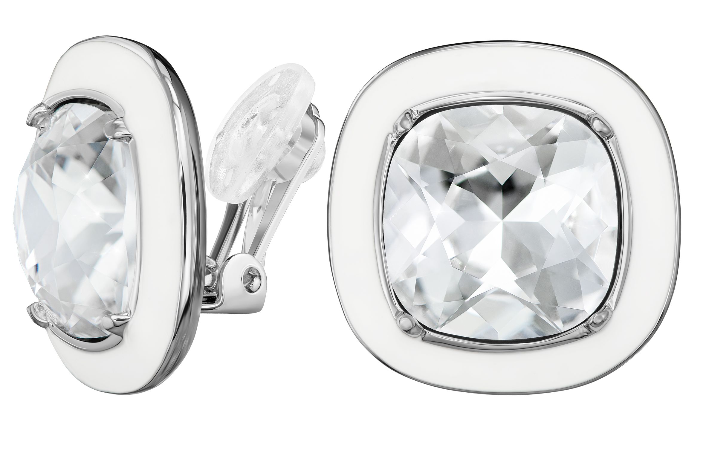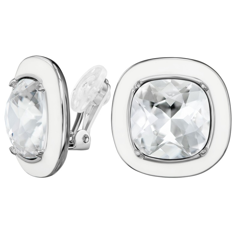 Traveller Ohrclips - Silberfarben - Kristall - Weißes Emaille - Quadratisch - Platiniert - 18x18 mm