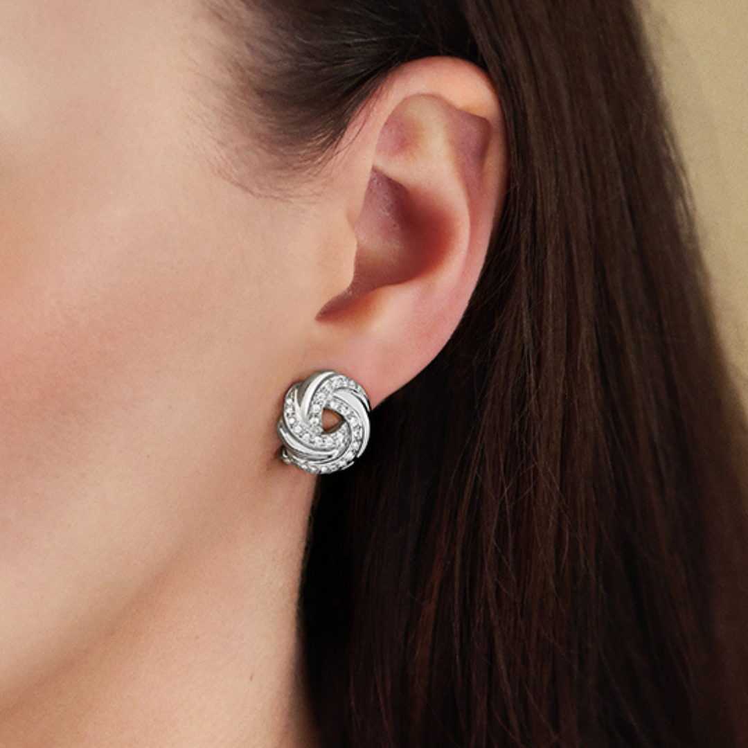 Diese Ohrclips von Traveller sind anmutig und stylish. Die silberfarbenen Ohrclips sind vollständig platiniert und haben die Form eines zweisträngigen Knotens. Die beiden Stränge sind anmutig miteinander verflochten und bestehen aus einem mit Preciosa-Kristallen verzierten Strang und einem glänzenden, silberfarbenen Strang. Die Ohrclips haben einen Durchmesser von 17 Millimetern und wiegen jeweils 4 Gramm. Dank des einzigartigen Verschlusssystems von Traveller sind diese Ohrclips sehr bequem, leicht und sicher zu tragen.