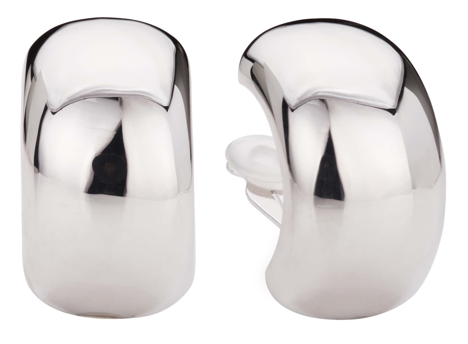 Diese stilvollen Ohrclips von Traveller sind zeitlos und dennoch gewagt. Die großen, glänzenden Ohrringe ohne Ohrlöcher in Form von halben Creolen sind platiniert. Sie sind 34 x 20 Millimeter groß und wiegen jeweils 13 Gramm. Dank des einzigartigen Verschlusssystems von Traveller sind diese Ohrclips sehr bequem für den täglichen Gebrauch, stabil und sicher zu tragen.