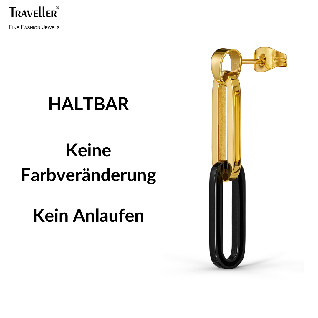 Traveller Ohrhänger - Bicolor - Gold & Schwarz - Glieder - Edelstahl - Vergoldet - 40 mm - 181268