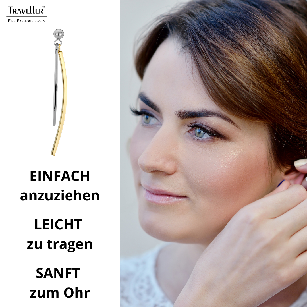 Traveller Ohrhänger - Bicolor - Silber- & Goldfarben - Edelstahl - 50 x 4 mm - 181287