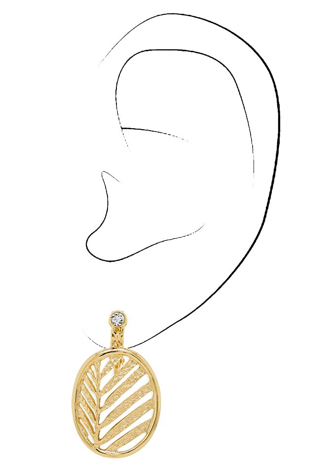 Die Ohrclips der Linie Foglia von Grossé verleihen einen künstlerischen und eleganten Touch. Die mit 22 Karat vergoldeten Ohrringe haben einen Anhänger, in dem ein Blattmotiv zu sehen ist. Darüber ist ein Preciosa-Kristall gefasst. Insgesamt messen die Ohrclips 32 x 20 Millimeter. Die Ohrringe wiegen jeweils 4,5 Gramm.