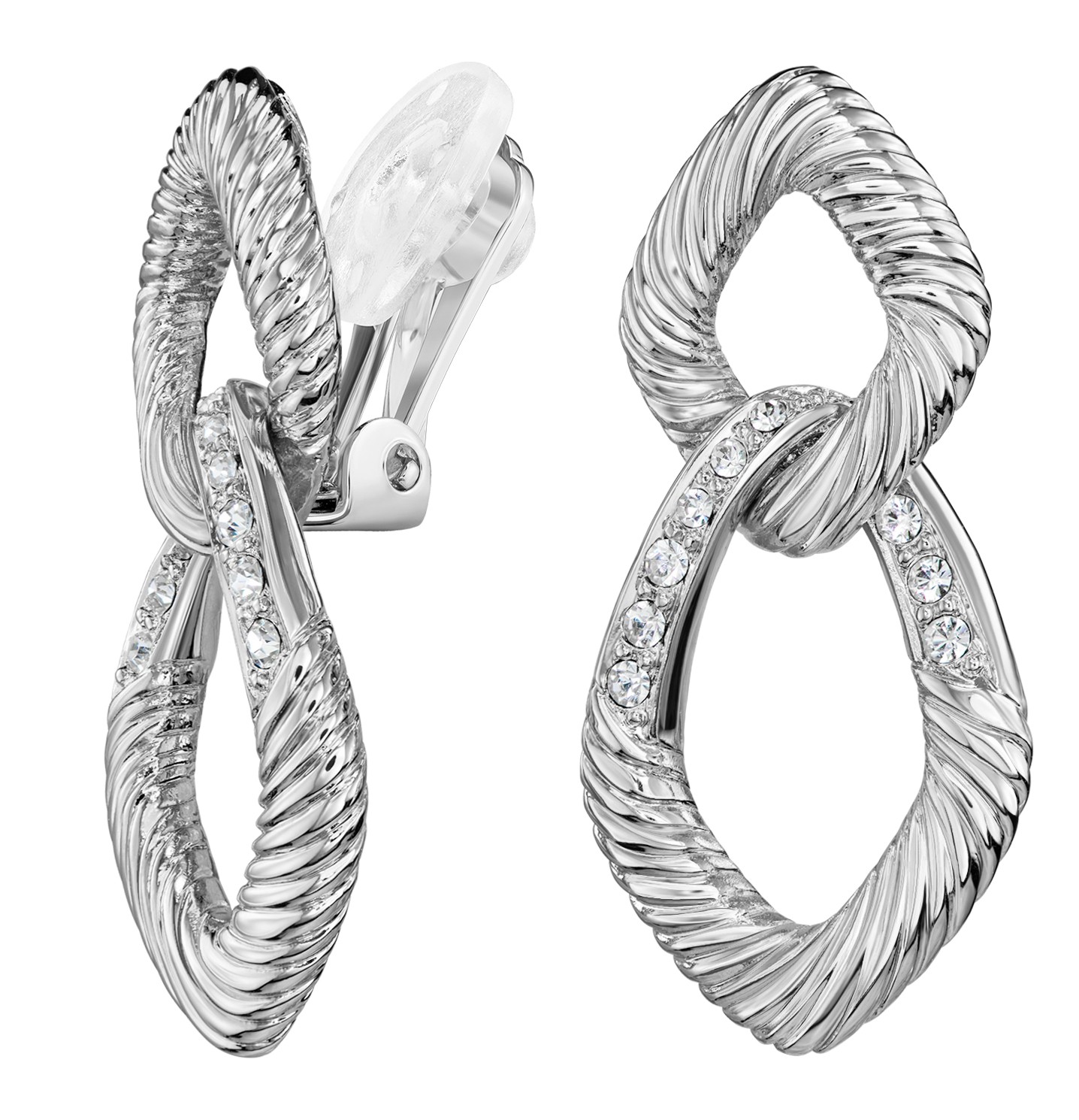Diese stilvollen Ohrringe von Traveller haben ein kunstvolles Design und passen zu jedem Outfit. Zwei gefütterte Glieder haken ineinander, das untere Glied ist mit Kristallen von Preciosa besetzt. Die platinierten Ohrclips messen insgesamt etwa 31 x 15 Millimeter und wiegen jeweils 4 Gramm. Dank des einzigartigen Verschlusssystems von Traveller sind diese Ohrclips sehr bequem, leicht und sicher zu tragen.