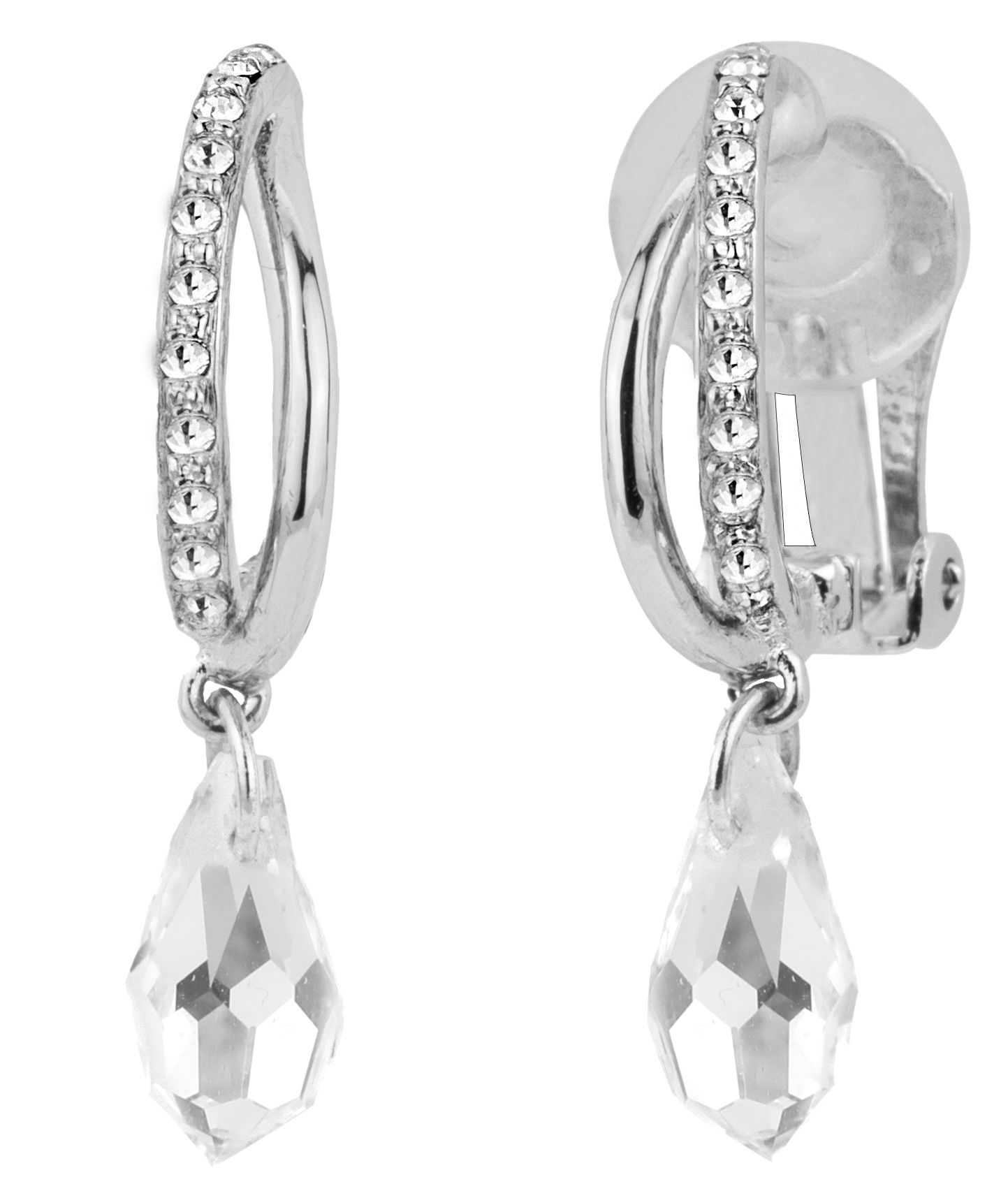 Traveller Ohrclip - Hänger - Silberfarben - Kristallen - Tropfen - Platiniert - 30x5mm
