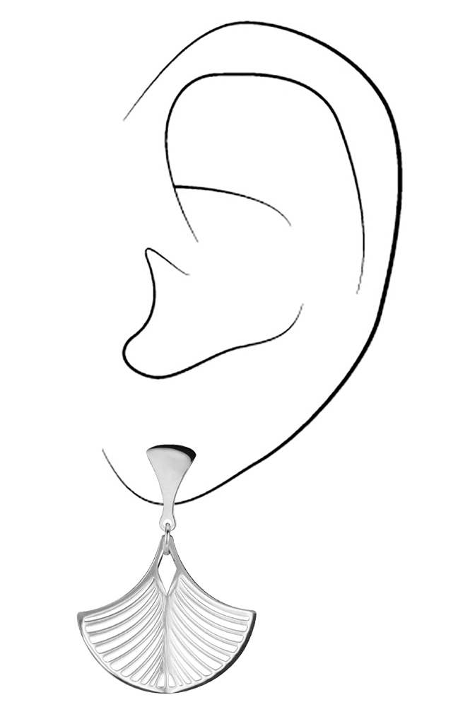 Der Fächer ist seit Jahren weltweit ein beliebtes Accessoire und ein häufig verwendetes Kunstobjekt. Mit diesen Ohrringen von Traveller in Form eines Fächers tragen Sie ein kleines Kunstwerk bei sich! Die silberfarbenen Edelstahlohrringe haben die Maße 30 x 21 Millimeter.