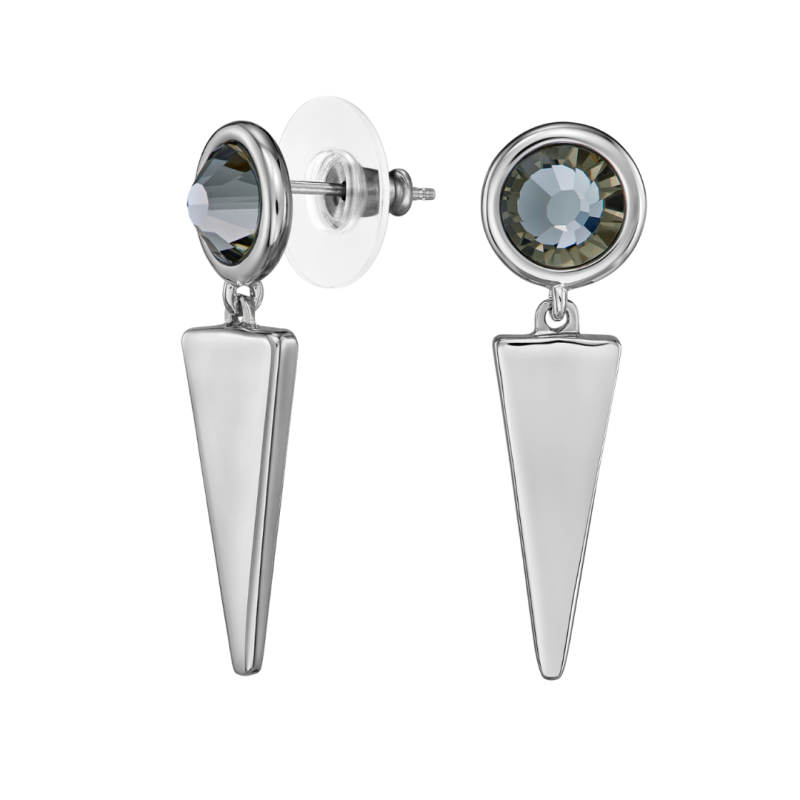 Traveller Ohrhänger - Silberfarben - Kristalle - Schwarz - Platiniert - 35 x 10 mm
