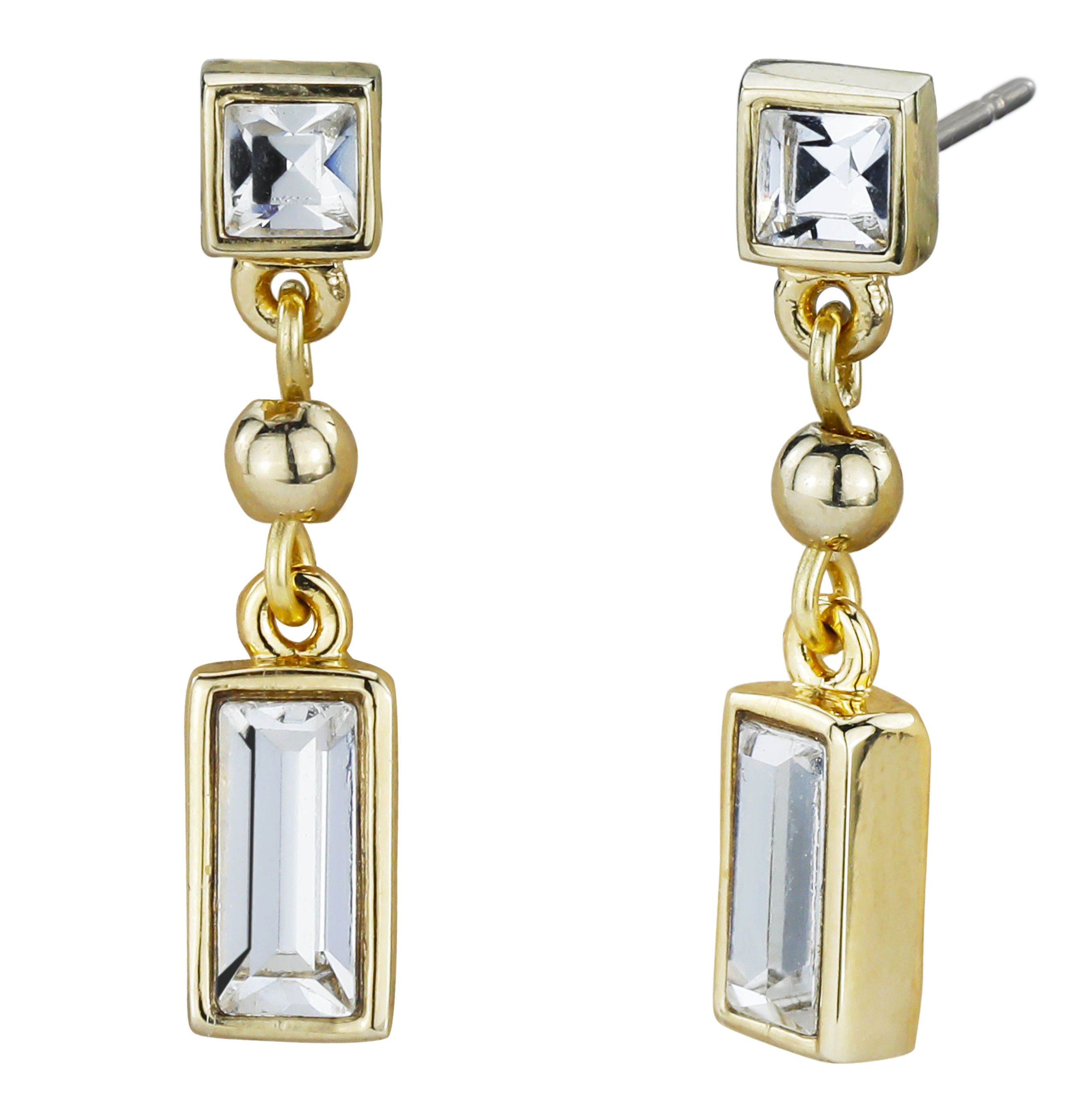 Dieses elegante Paar Ohrringe von Traveller verwandelt ein klassisches Design in ein elegantes Design. Die mit 22 Karat Gold plattierten Ohrringe (Kernmaterial: Metall) bestehen aus zwei funkelnden Kristallen von Preciosa, die untereinander hängen. Die Ohrringe haben insgesamt eine Größe von 25 x 5 Millimetern. Sie wiegen jeweils nur 1,5 Gramm. Da die Ohrstecker aus antiallergischem Titan bestehen, kann jeder diese Ohrringe tragen!
