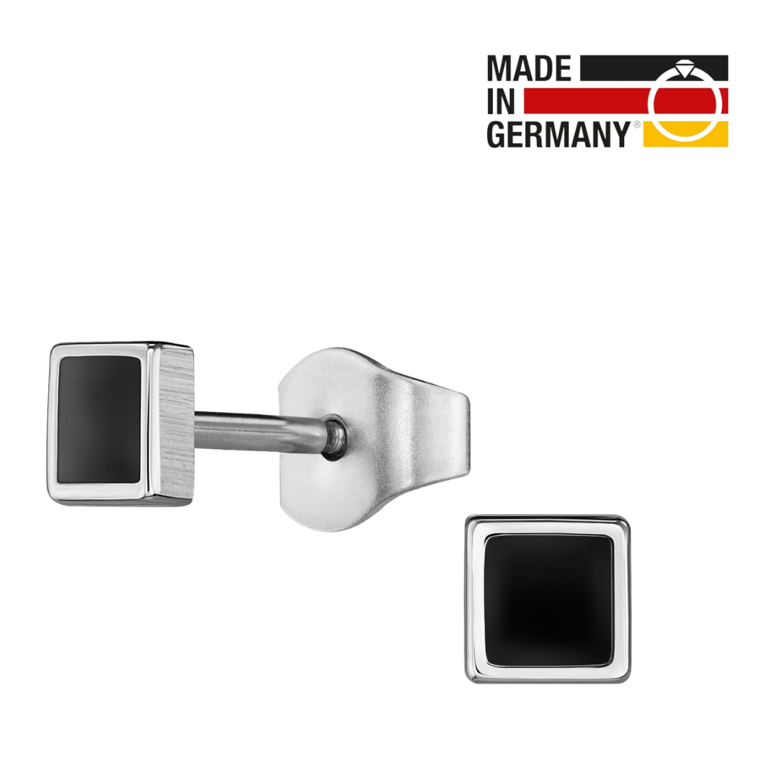 Traveller Ohrringe - Herren - Made in Germany - Edelstahl - Schwarz&Silber - Quadrat 4 mm - Nachhaltig