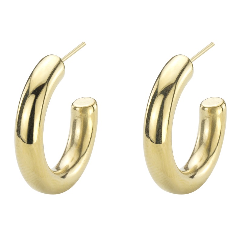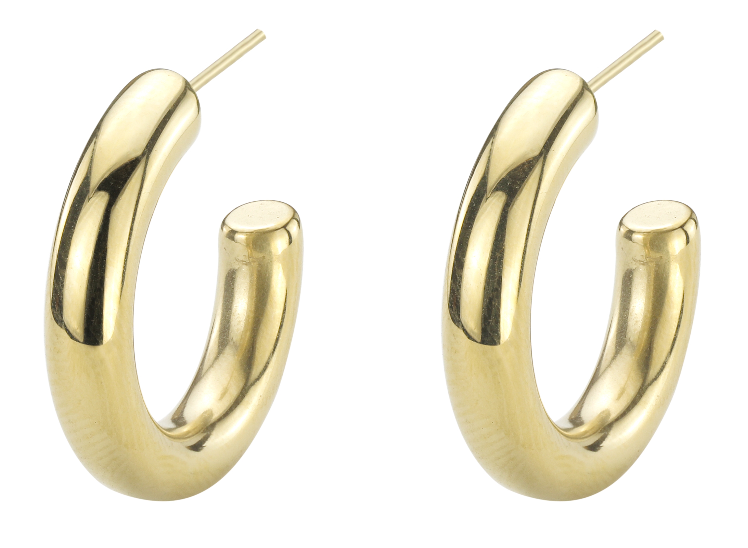 Diese klassischen kleinen Ohrringe von Traveller passen zu jedem Outfit. Die goldfarbenen Edelstahlen Ohrringe haben einen Durchmesser von 25 Millimetern und wiegen jeweils 1,5 Gramm.