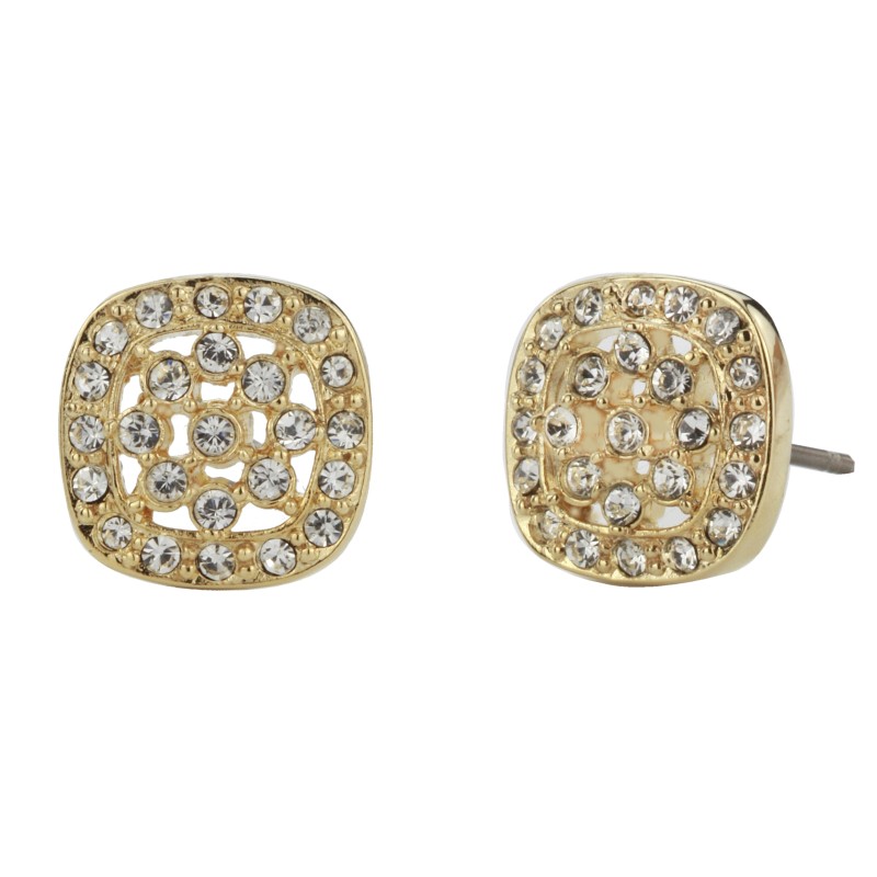 Traveller Ohrstecker - 22kt Vergoldet - Kristalle - Quadrat - Ø10 mm