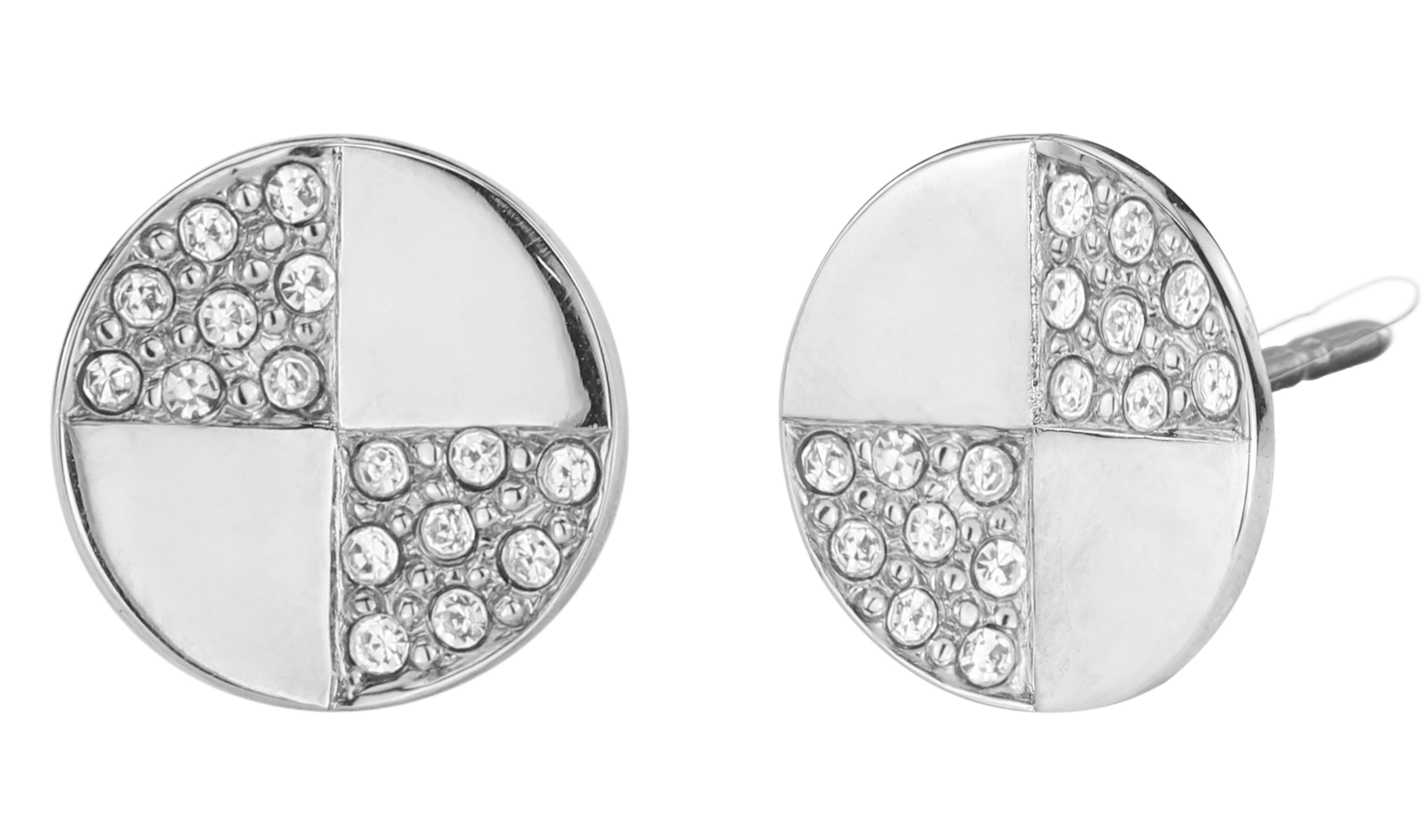 Diese symmetrischen Ohrringe von Traveller haben ein schlankes und schönes Design. Die runden Ohrclips sind in vier Fächer unterteilt, von denen zwei mit Preciosa-Kristallen besetzt sind. Die vollständig platinierten Ohrringe (Kernmaterial: Metall) haben einen Durchmesser von 1 Zentimeter und wiegen jeweils nur 1 Gramm. Dank des einzigartigen Verschlusssystems von Traveller sind diese Clips sehr leicht, bequem und sicher zu tragen.