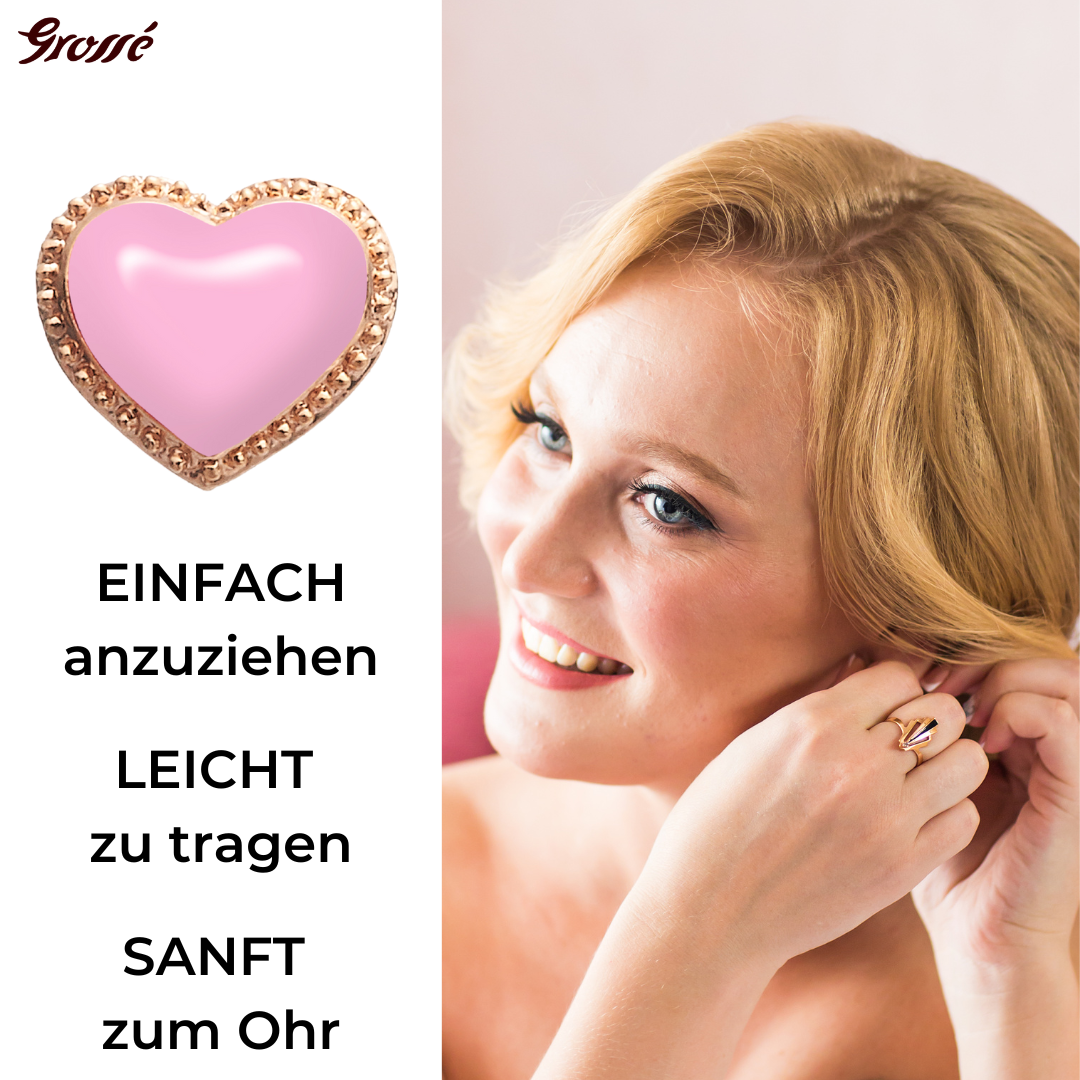 Die hübsche Linie Pop Heart von Grossé ist eine spielerisch glänzende Schmucklinie mit einem glänzenden Herz als Herzstück. Diese Ohrringe zeigen ein rosafarbenes Emailleherz, das von kleinen goldenen Kugeln umrahmt wird. Die vollständig vergoldeten Ohrstecker haben einen Durchmesser von 7 Millimetern und wiegen jeweils nur 0,5 Gramm.