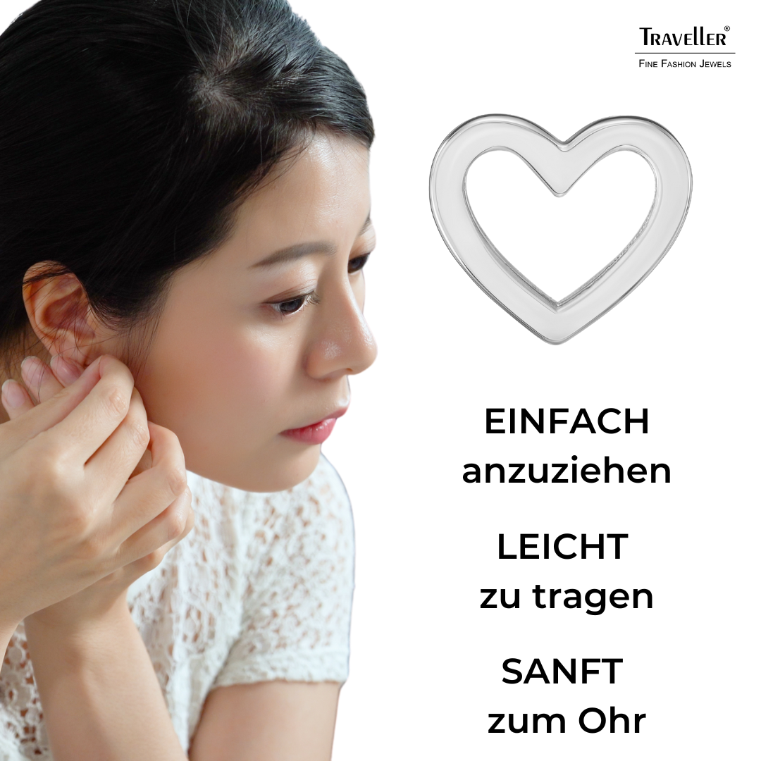 Diese Herzen von Traveller quellen über vor Liebe, subtil, aber mit viel Ausstrahlung. Die silberfarbenen Herzen sind aus Edelstahl gefertigt. Die Ohrringe messen 6 x 7 Millimeter und wiegen nur 0,5 Gramm pro Ohrring.