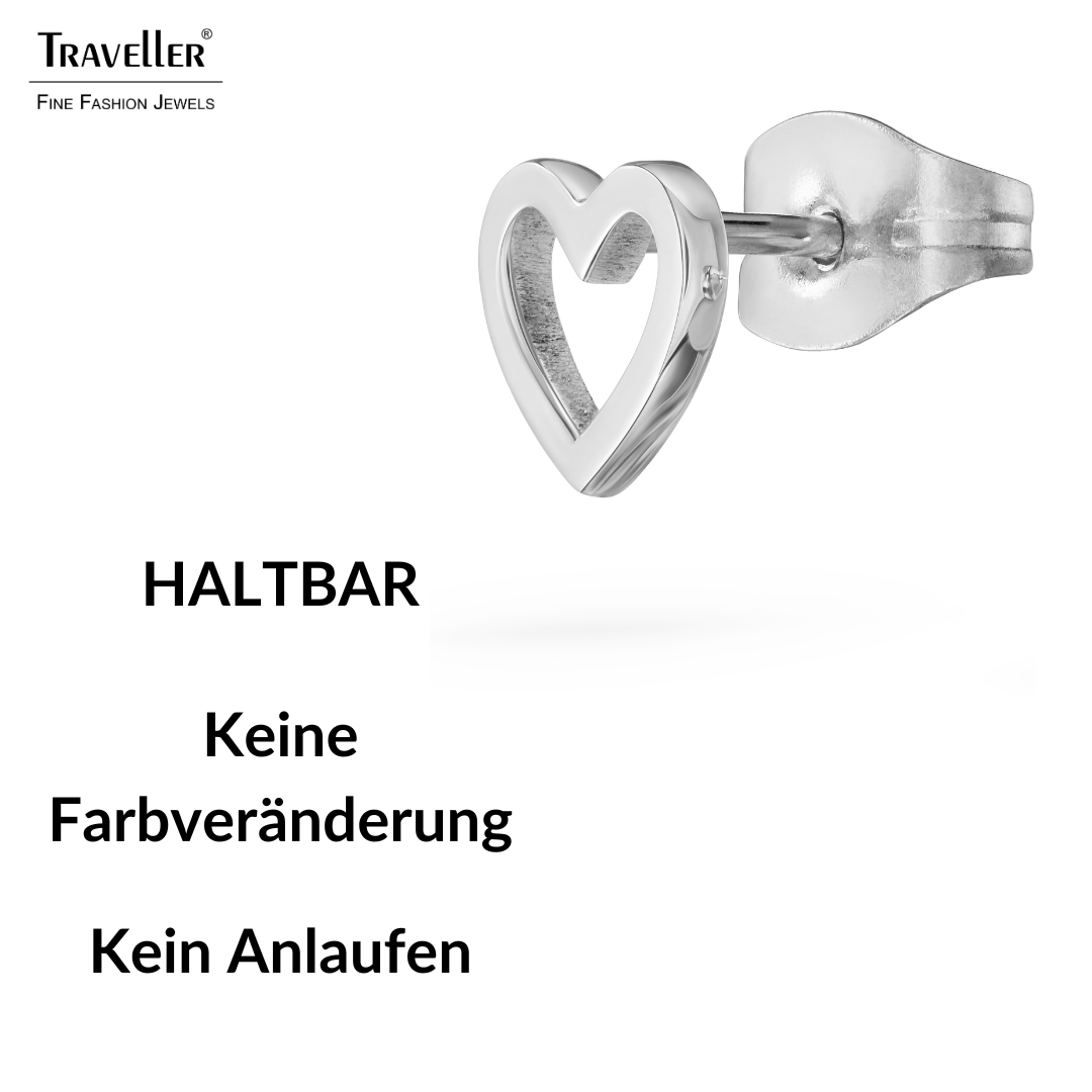 Traveller Ohrstecker - Silverfarbe - Herz - 6x7 mm - Edelstahl - 166340