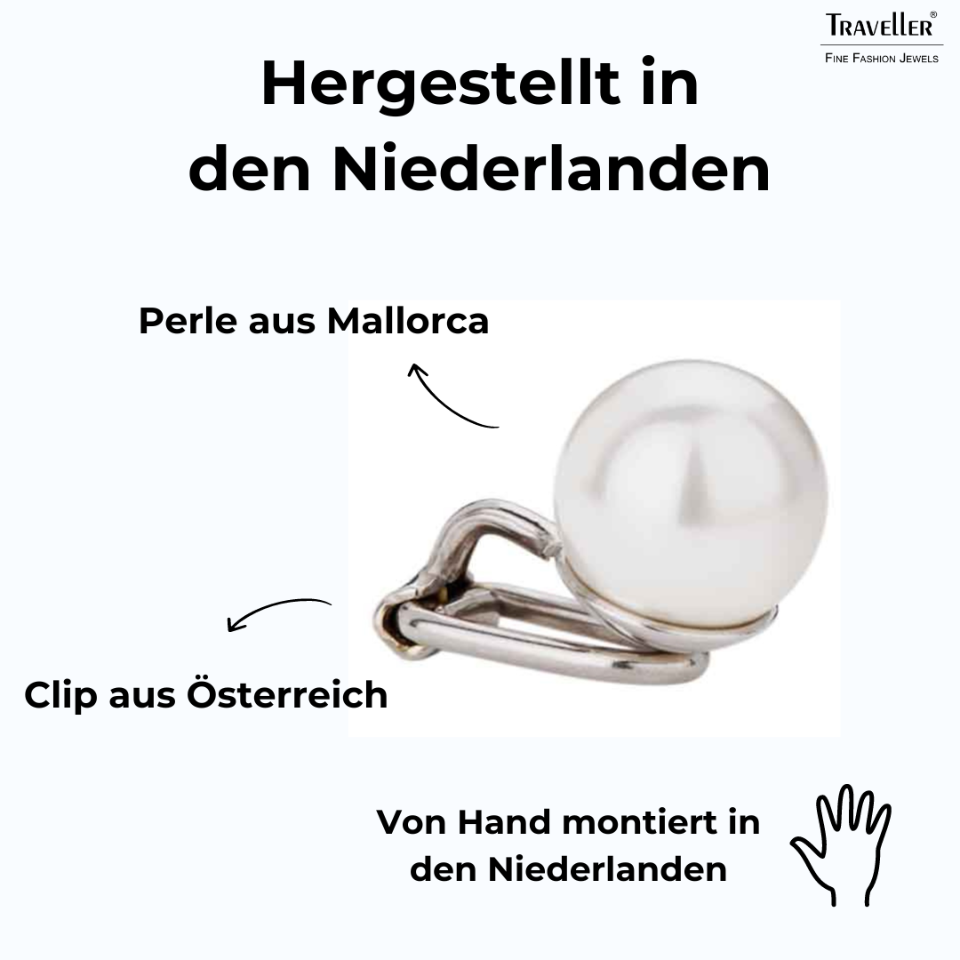Der klassische Perlenohrring steht für Schönheit und Eleganz. Diese Perlenclips von Traveller (Kernmaterial: Metall) sind mit hochwertigen Imitationsperlen aus Mallorca besetzt. Die weißen Perlen haben einen Durchmesser von 10 Millimetern, die Ohrringe sind insgesamt 15 x 10 Millimeter groß. Die Ohrringe sind mit einer Schutzschicht aus Platin versehen. Dank des einzigartigen Verschlusssystems von Traveller sind diese Ohrclips sehr bequem, leicht und sicher zu tragen. Diese Ohrringe sind in einer Geschenkbox aus umweltzertifiziertem Material verpackt!