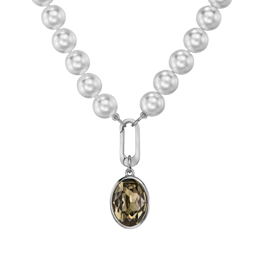Traveller Perlenkette mit Anhänger - Perlen - 10mm - Weiß - Kristall - Grau/Schwarz - Oval - 45cm - Platiniert