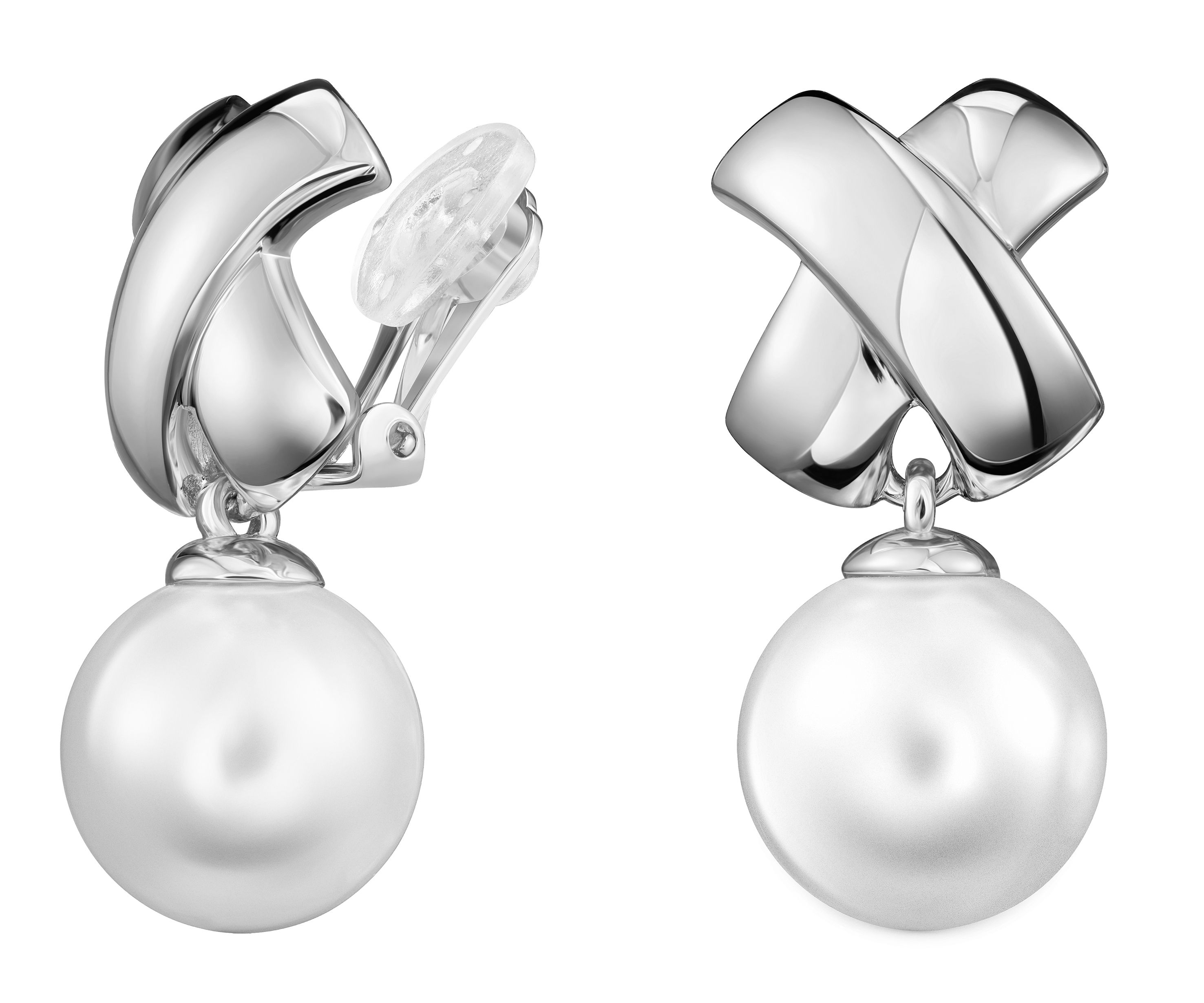 Traveller Ohrclip - Hänger - Perle - 14mm - Weiss - Kreuz - Silberfarbe - Platiniert - 32x16 mm