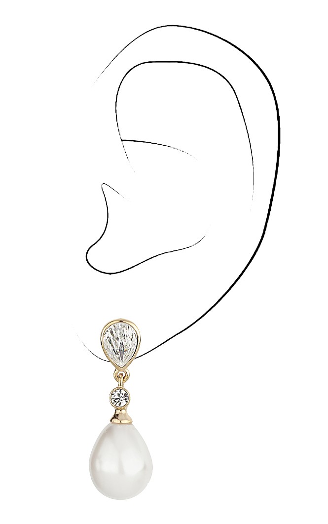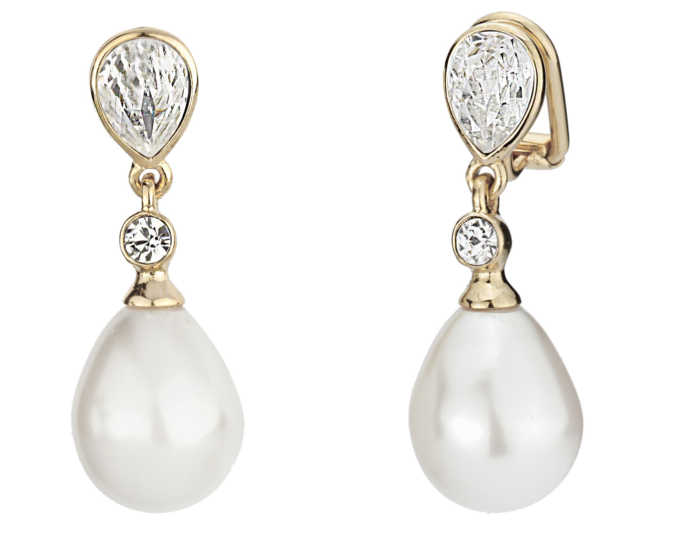 Traveller Ohrclip - Hänger - Tropfen Perle - 15x12 mm - Weiß - Preciosa Kristalle - 22kt vergoldet - 32x12 mm