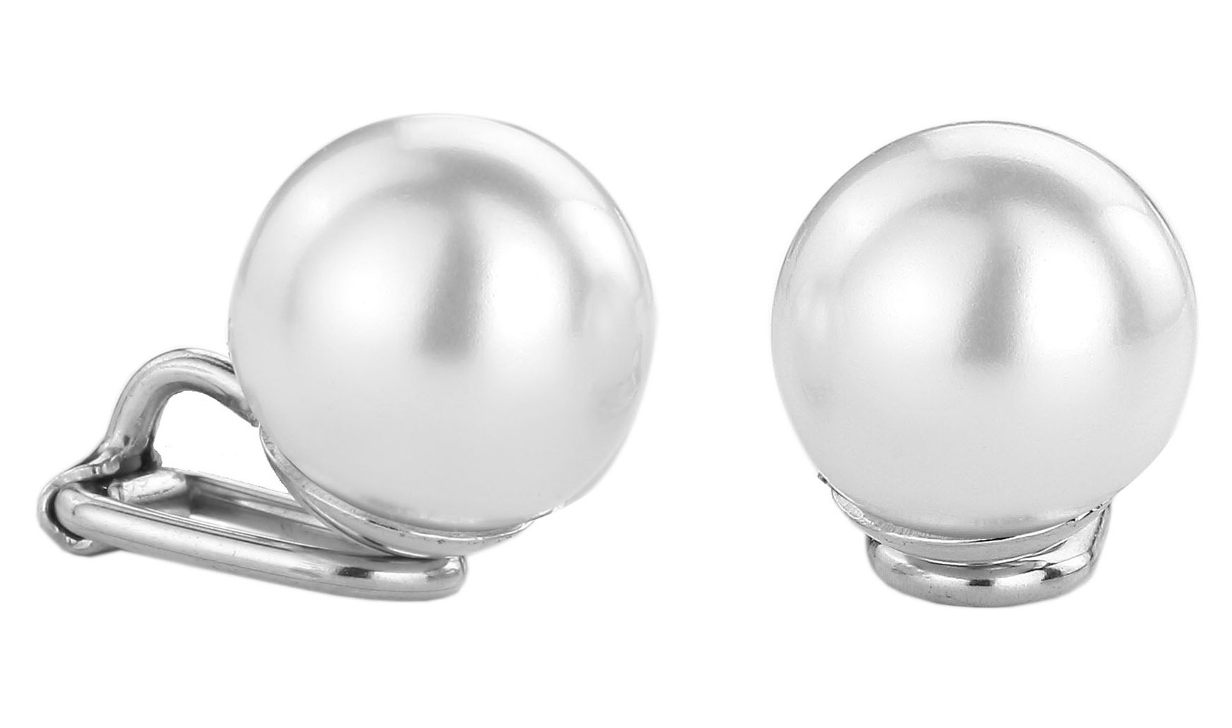 Traveller Ohrclip - Perle - 12 mm - Weiss - Platiniert - Silberfarben
