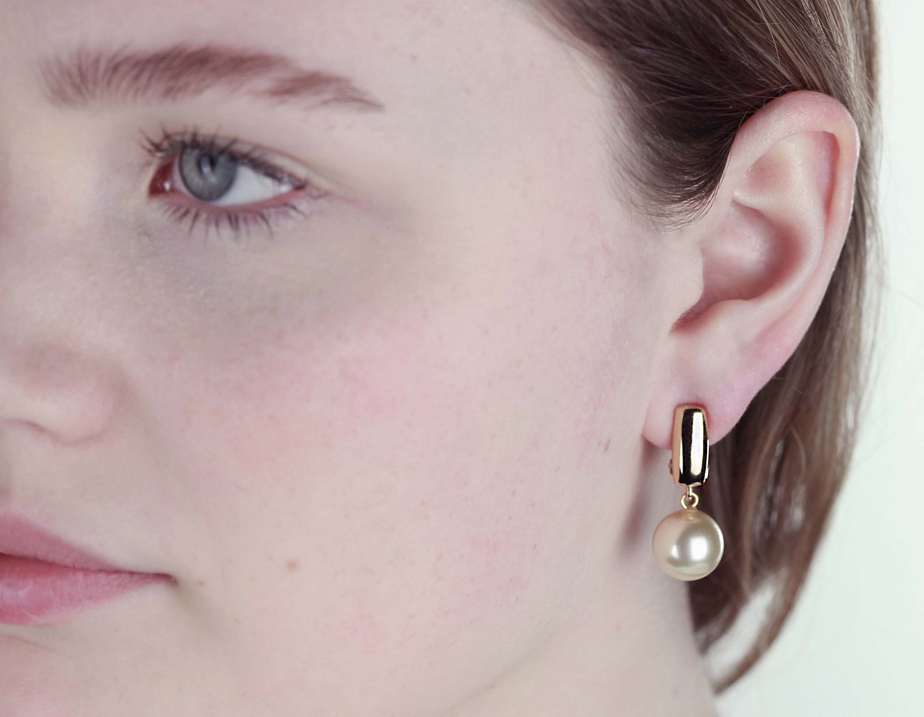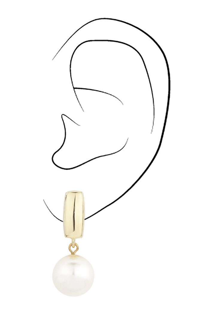 Traveller Ohrclip - Perle - Hänger - 12 mm - Creme - 22kt Vergoldet - Goldfarbe - 30x12 mm