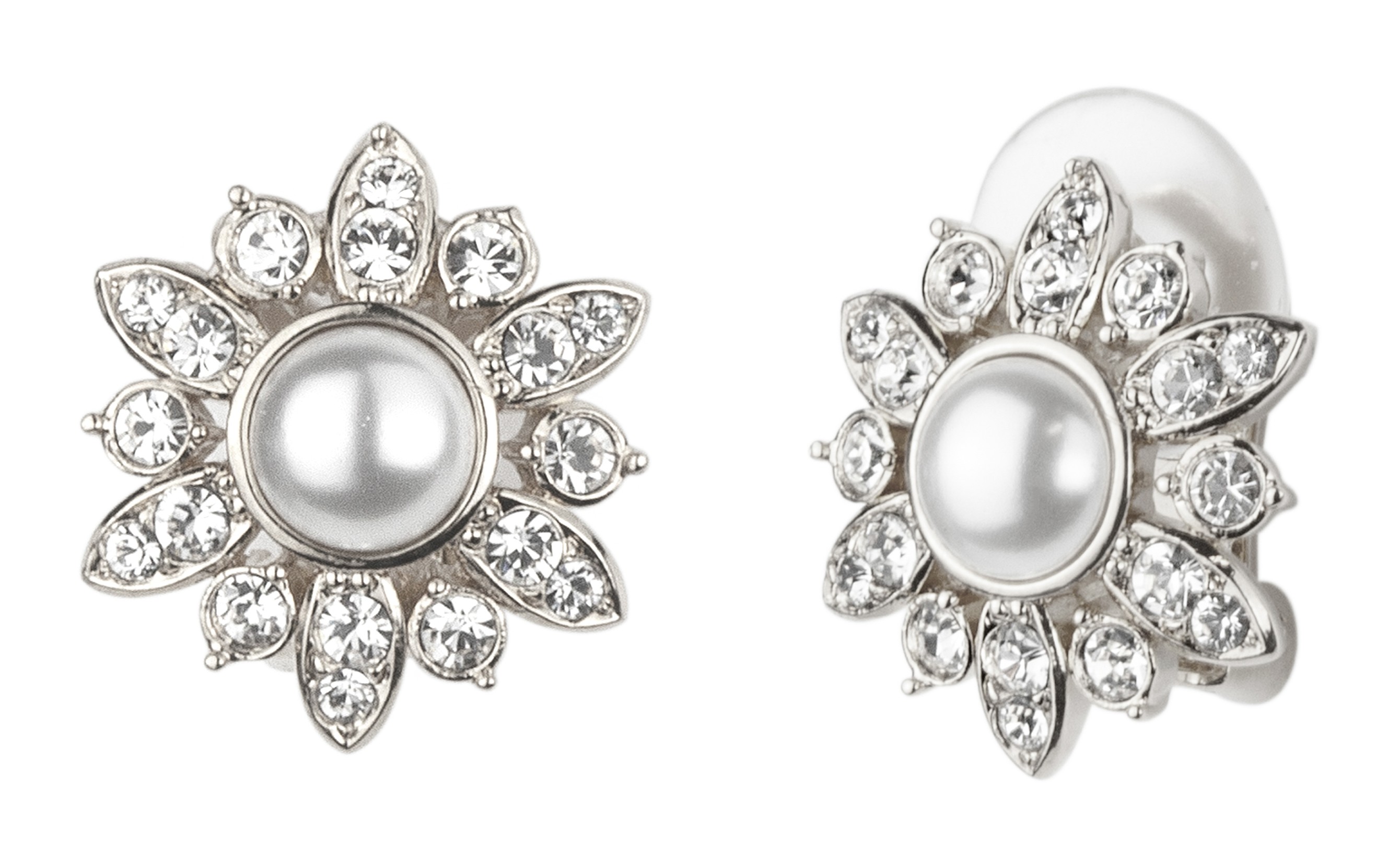 Traveller Ohrclip - Silberfarben - Perle - 6mm - Weiß - Kristalle - Platiniert - 16mm