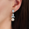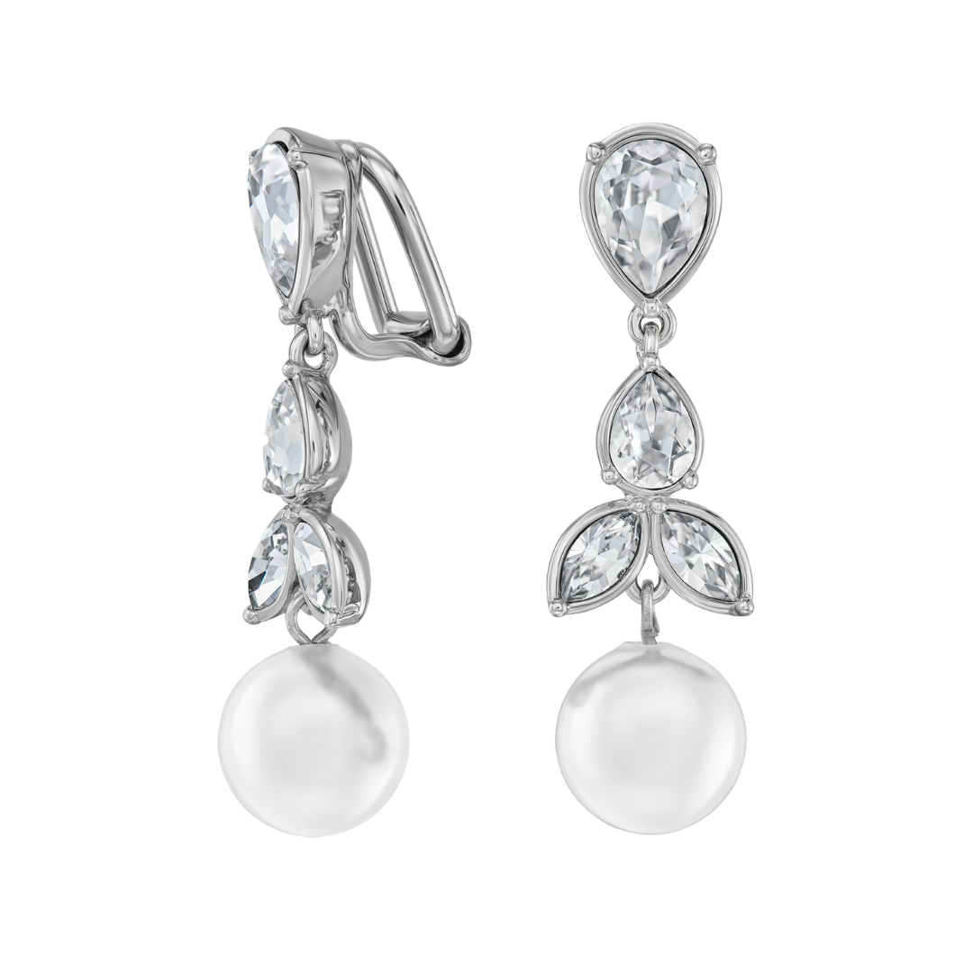 Traveller Ohrclips - Hänger - Silberfarben - Perle - 10mm - Weiß - Kristalle - Platiniert - 35x10mm