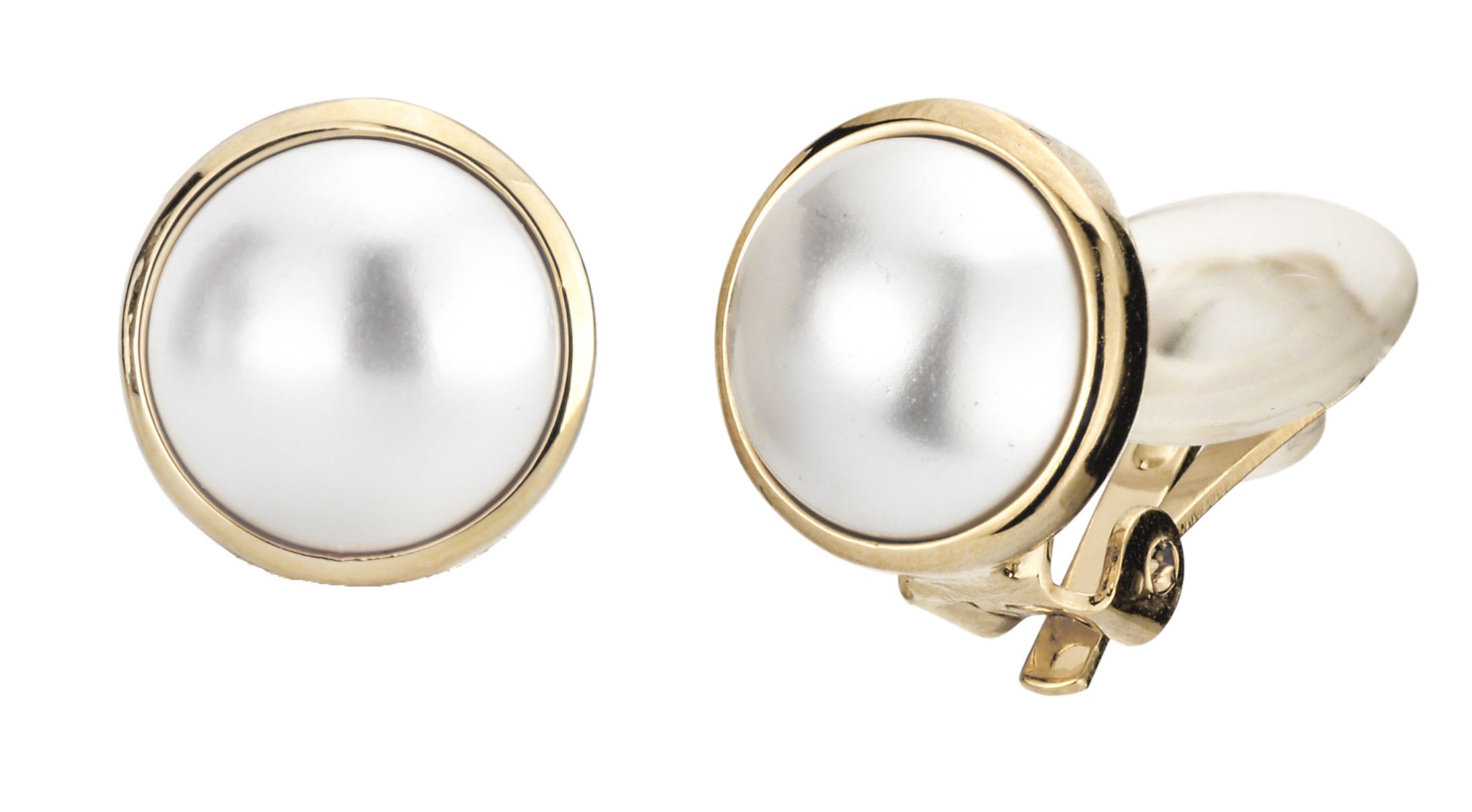 Traveller Ohrclips - Perle - 10 mm - Weiss - Goldfarbe - 22kt Vergoldet