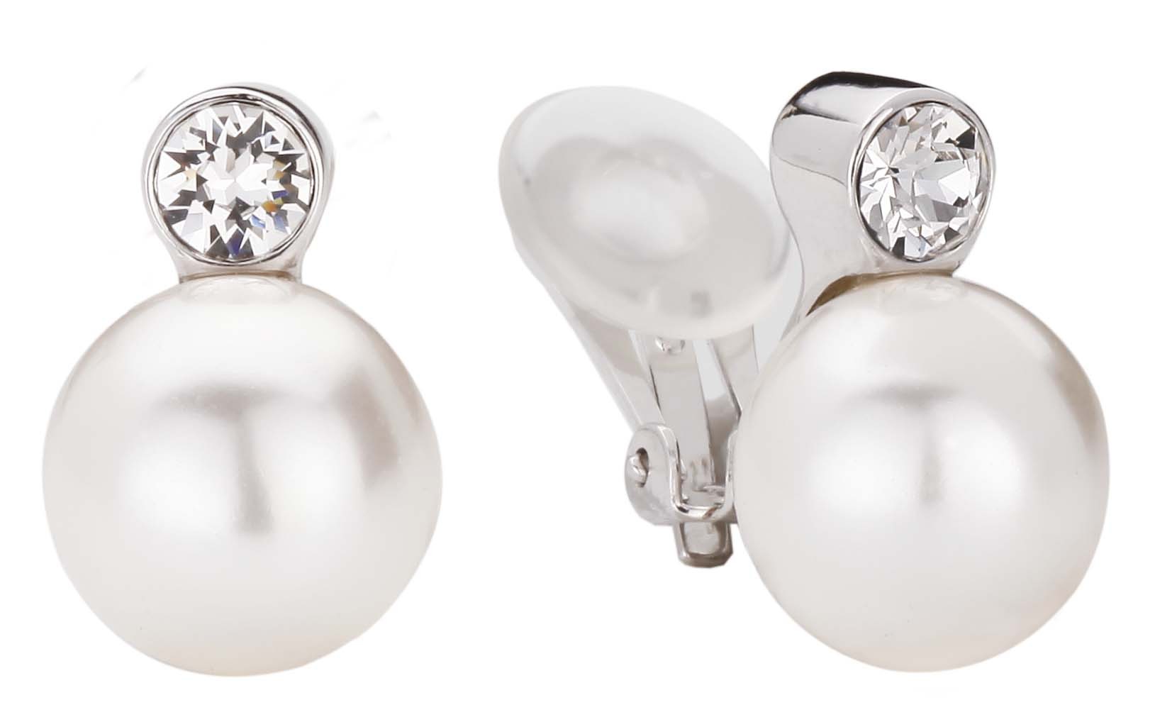 Traveller Ohrclips - Perle - 12 mm - Weiß - Preciosa Kristalle - Platiniert - Silberfarbe - 15x12 mm