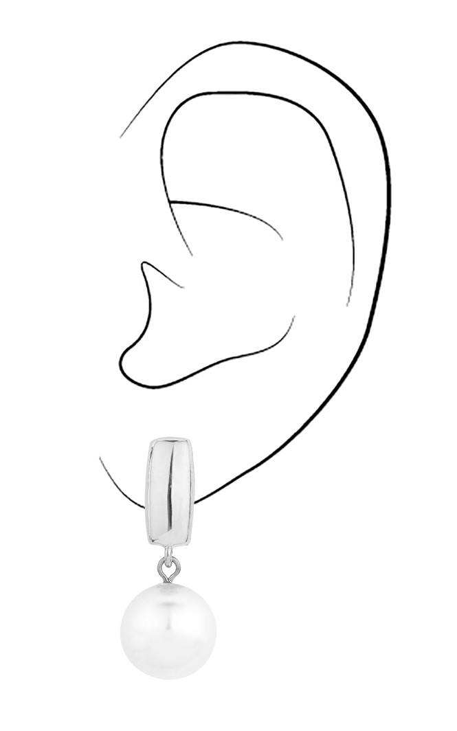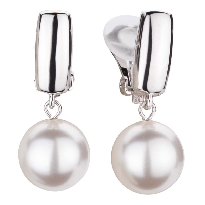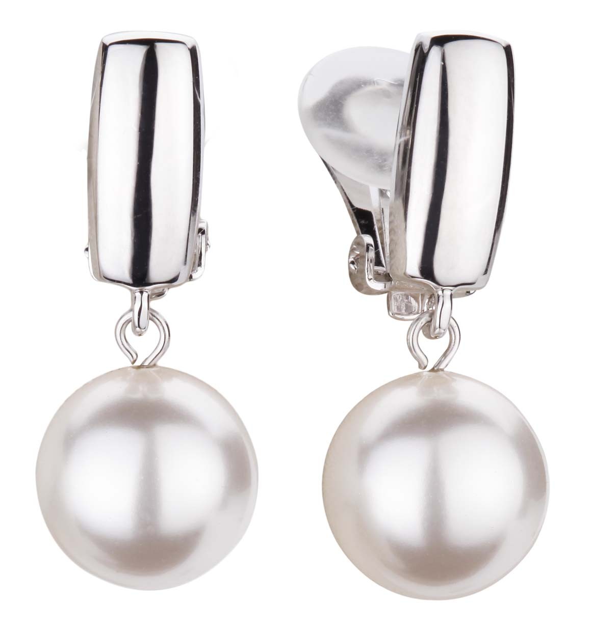 Traveller Ohrclips - Perle - Hänger - 12 mm - Weiß - Platiniert - Silberfarbe - 30x12 mm