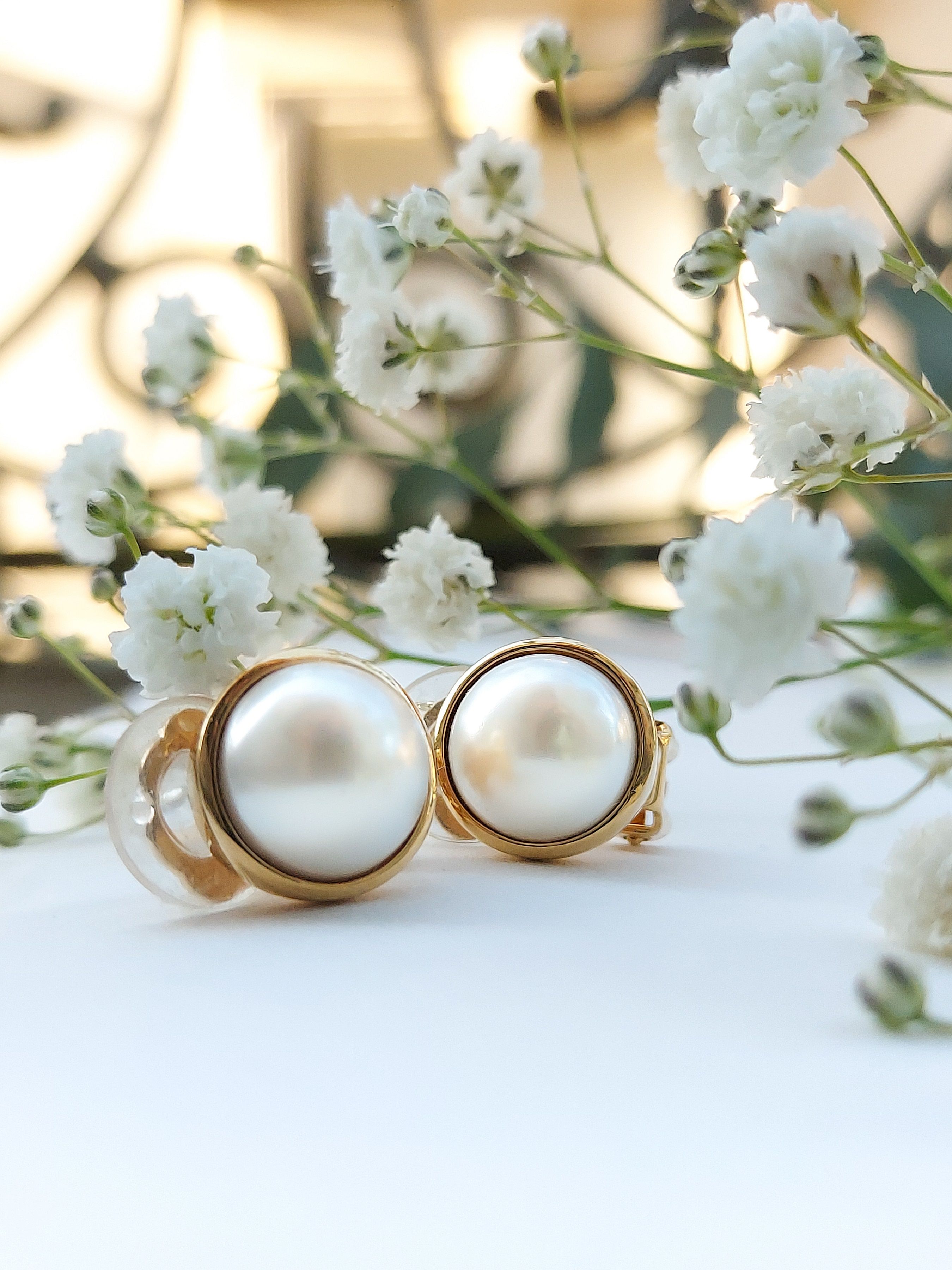 Traveller Ohrclips - Perlen - 16 mm - Weiß - Goldfarben - 22kt Vergoldet