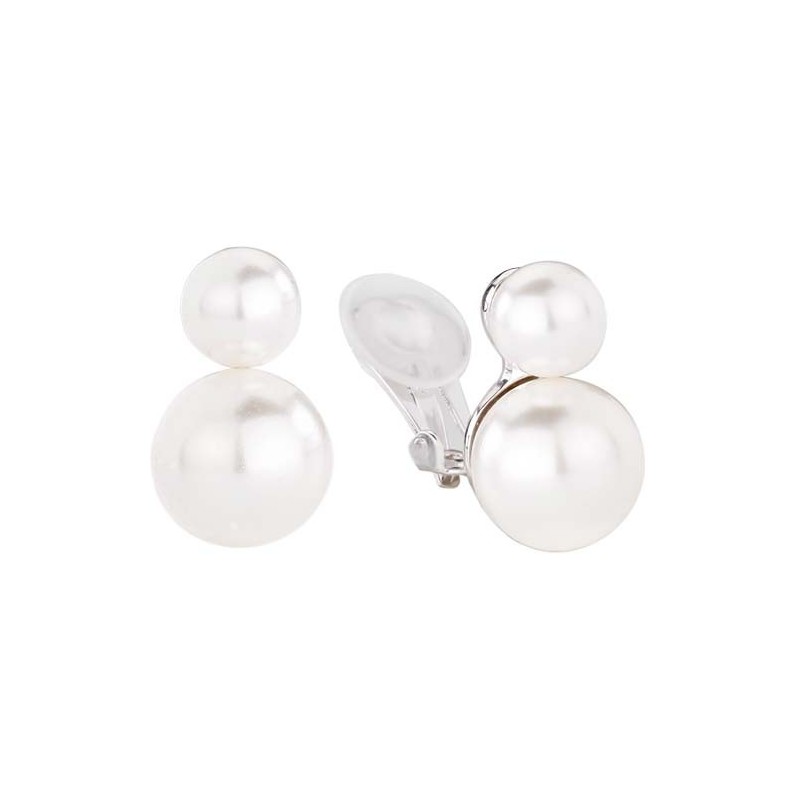 Traveller Ohrclips - Silberfarbe - Perle - 8 und 12mm - Weiss - Platiniert - 20x12 mm