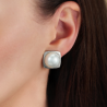 Glänzen Sie mit diesen wunderschönen Traveller Ohrringen! Die wunderschöne weiße Perle hat einen Durchmesser von 16 Millimetern und wird von einem silberfarbenen Quadrat eingerahmt. Diese hochwertigen Kunstperlen stammen von Mallorca – einer Insel, die für ihre Perlen berühmt ist. Die Ohrclips haben einen Durchmesser von 18 Millimetern und sind vollständig platiniert. Jeder Ohrclip wiegt 5,75 Gramm und ist dank des einzigartigen Traveller Verschlusssystems sehr leicht, bequem und sicher zu tragen.