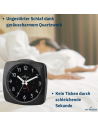 - Kein Tickgeräusch durch nachlaufenden Sekundenzeiger (geräuscharmes Quarzwerk)