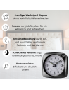 Die Schlummerfunktion (Snooze) kann nach Belieben genutzt werden. Und für einen ungestörten Schlaf sorgt das geräuscharme Quarzwerk.