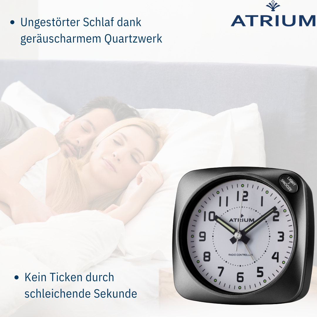 ATRIUM Wekker - Radiogestuurd - Analoog - Geen tikgeluid - Afgerond vierkant model - Duidelijk - Zwart - A610-7