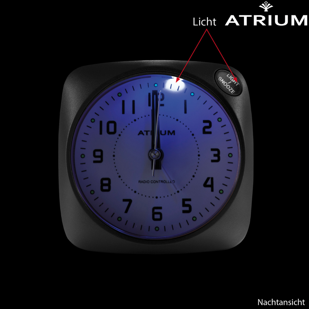 Der klassische analoge Funkwecker A610-7 von ATRIUM hat eine angenehme, abgerundete Form ohne Kanten und ist durch seine Größe von 8 x 8 cm sehr handlich aber dennoch standfest.