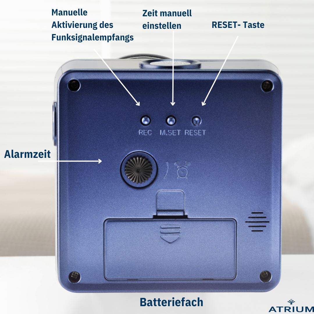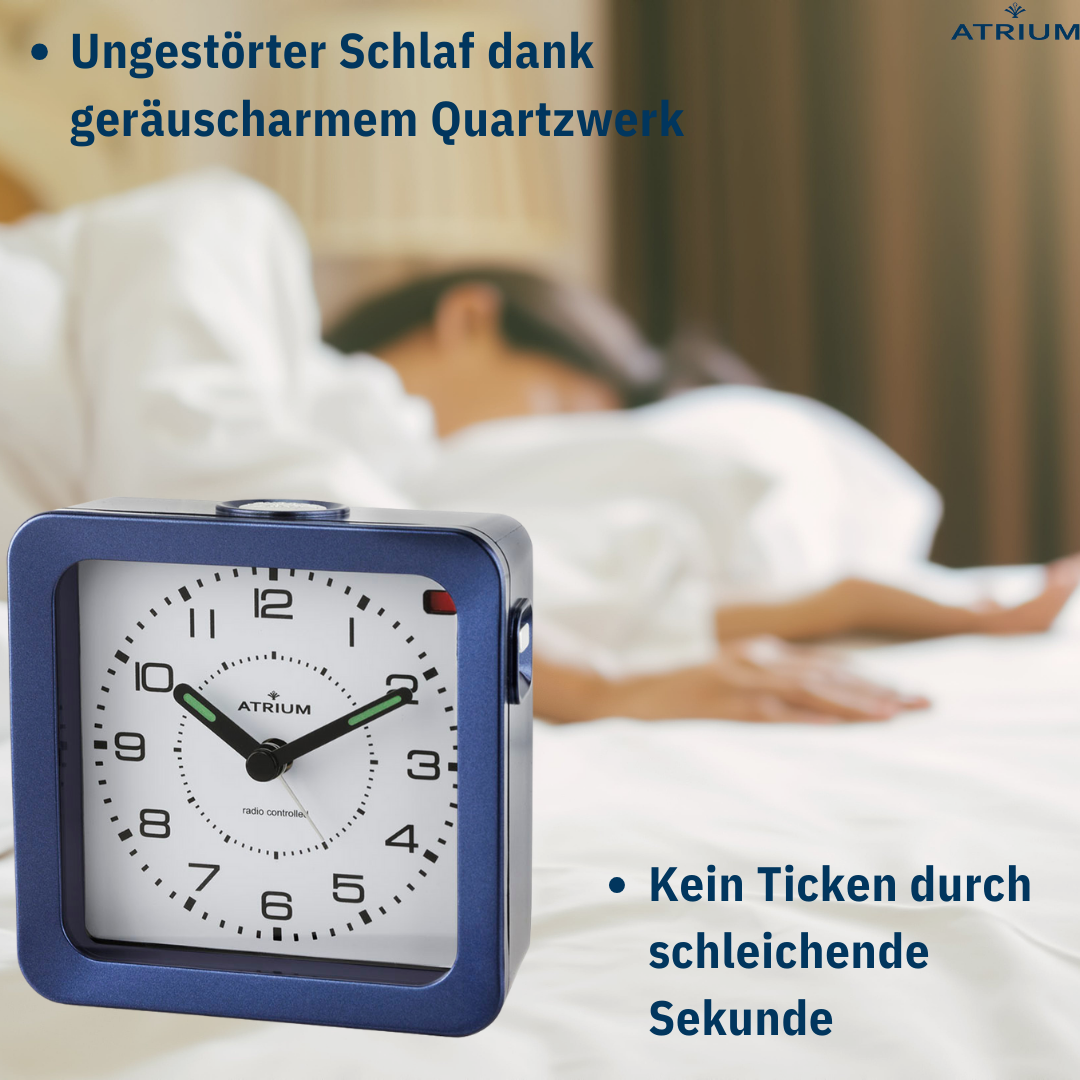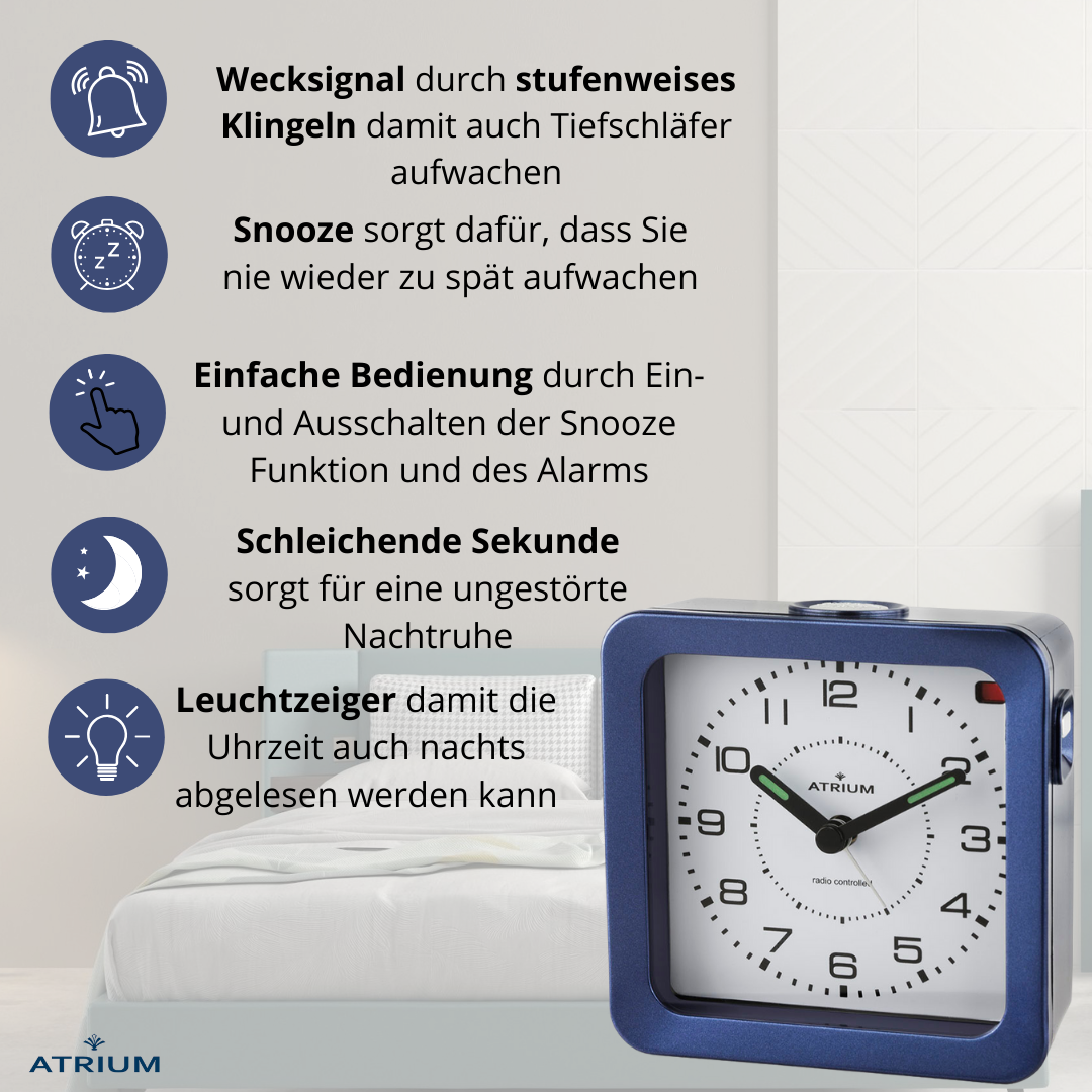 ATRIUM Wecker - Funkgesteuert - Analog - Blau - Aufbauton - Schlummerfunktion - A660-5