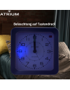 Der Funkwecker von ATRIUM besticht durch sein klassisches, zeitloses Design. Er empfängt das Signal über den deutschen Signalsender DCF77. Die Einstellung der Uhrzeit und die Umstellung auf Sommer- und Winterzeit erfolgen automatisch. Die quadratische Form in Dunkelblau mit silberfarbenen Bedienelementen und der schlicht gestaltete Ziffernblock verleihen dem Wecker ein dezentes und schickes Aussehen. Ist der Wecker eingeschaltet, färbt sich das Rechteck im oberen Bereich rot. Die großen schwarzen Ziffern erleichtern das Ablesen der Uhrzeit. Das piepsende Wecksignal ist deutlich hörbar und hat einen konstruktiven Geräuschpegel. Der Wecker verfügt auch über eine Schlummerfunktion. Der Knopf auf der Oberseite beleuchtet den Ziffernblock, nach 5 Sekunden geht das Licht automatisch aus. Eine moderne Dekoration in jedem Schlafzimmer oder Arbeitszimmer.