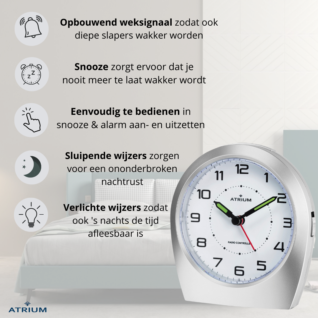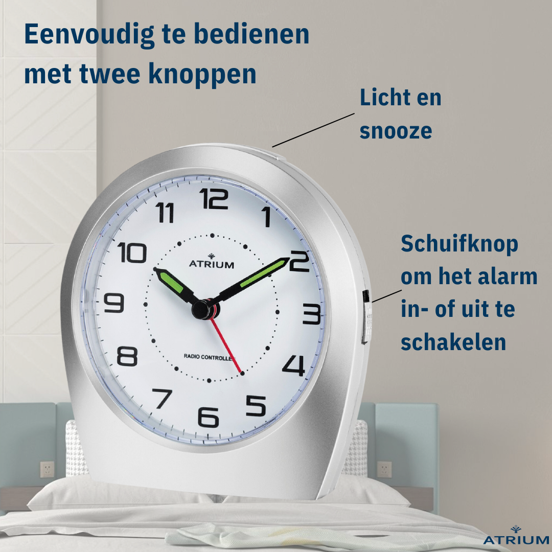 ATRIUM Alarm Clock - Radio-controlled - Analogue - Silver - Build-up Beep - Snooze - Easy to use €29.90