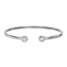 This elegant bangle bracelet by Traveller is characterized by its shiny zirconia, open design and remarkably light weight. Weighing only 4.4 grams and slightly bendable, it glides smoothly around your wrist and feels comfortable. This comfort and design make this silver coloured bangle the perfect accessory for the holidays, a unique look, or a special moment for yourself. The circles at the ends have a diameter of 1 centimeter.