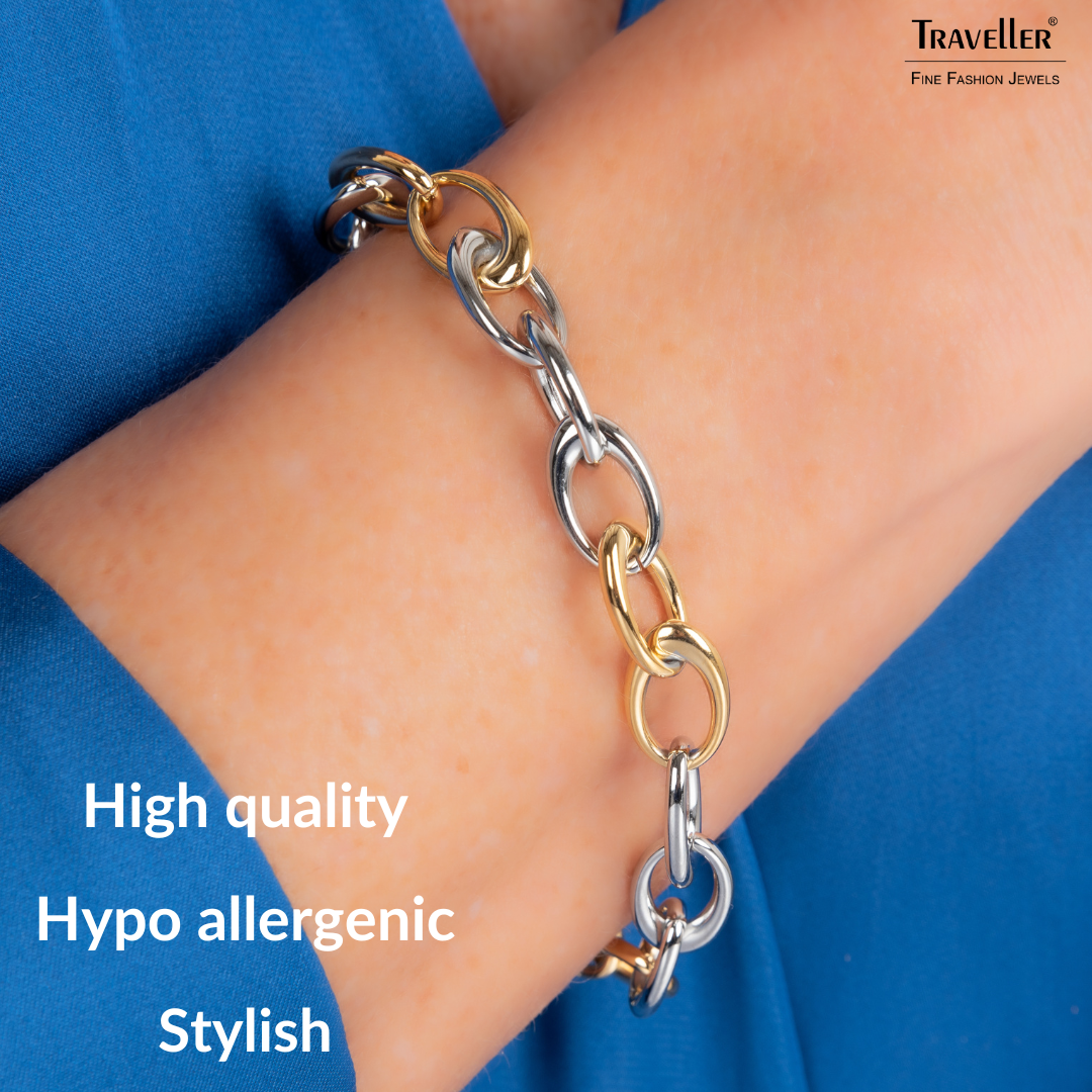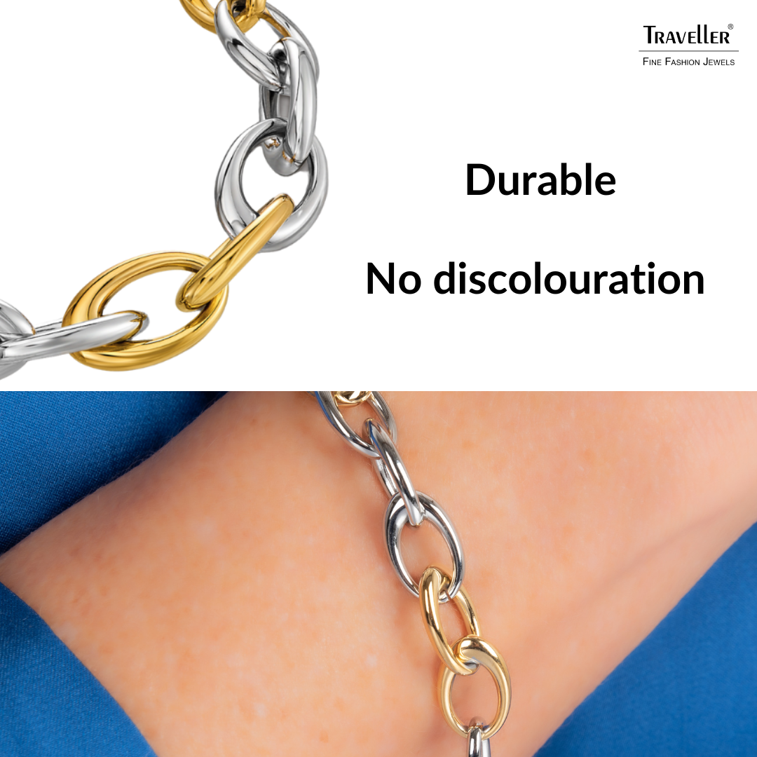 Traveller Bracelet - Bicolour - Gold & Silver- Oval Links - Stainless Steel & Gold Plated Stainless Steel - 21 cm - 181265
