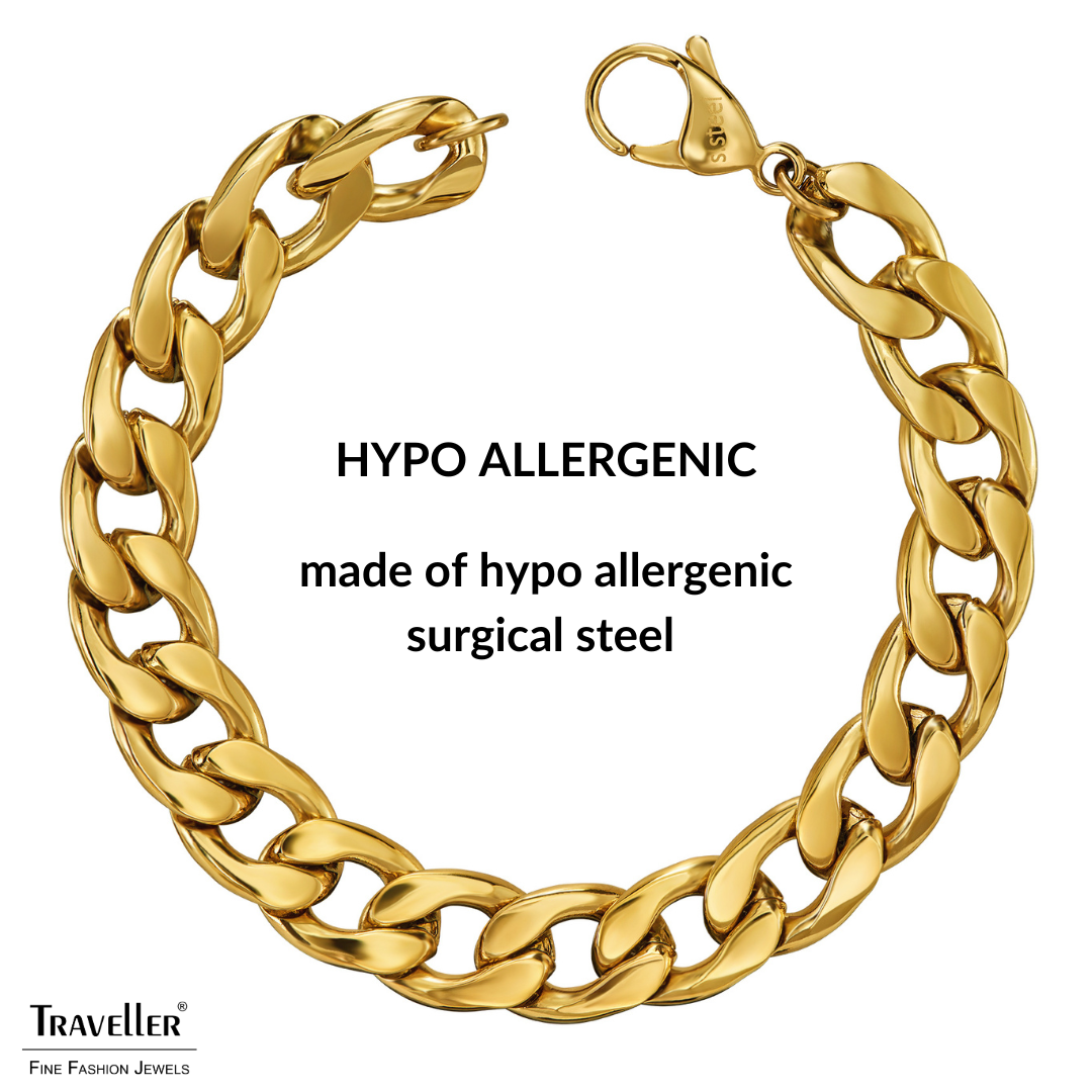 Traveller Bracelet - Men - Stainless Steel - Gold Plated - Link Bracelet - 21x1,10 cm