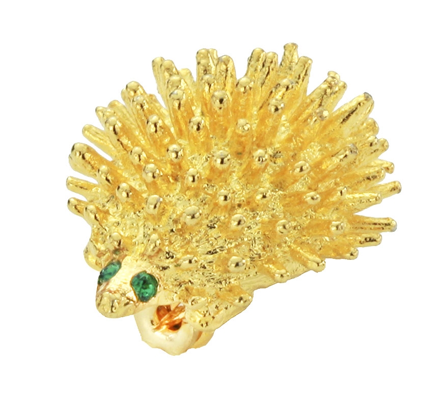 Osira Brooches - Vintage Brooch - Gold coloured - Hedgehog - Crystals - Green - Retro - Gold plated - 24x19 mm