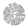 Traveller Brooch - Silver Coloured - Crystals - Flowered - Platinum Plated - 35 mm