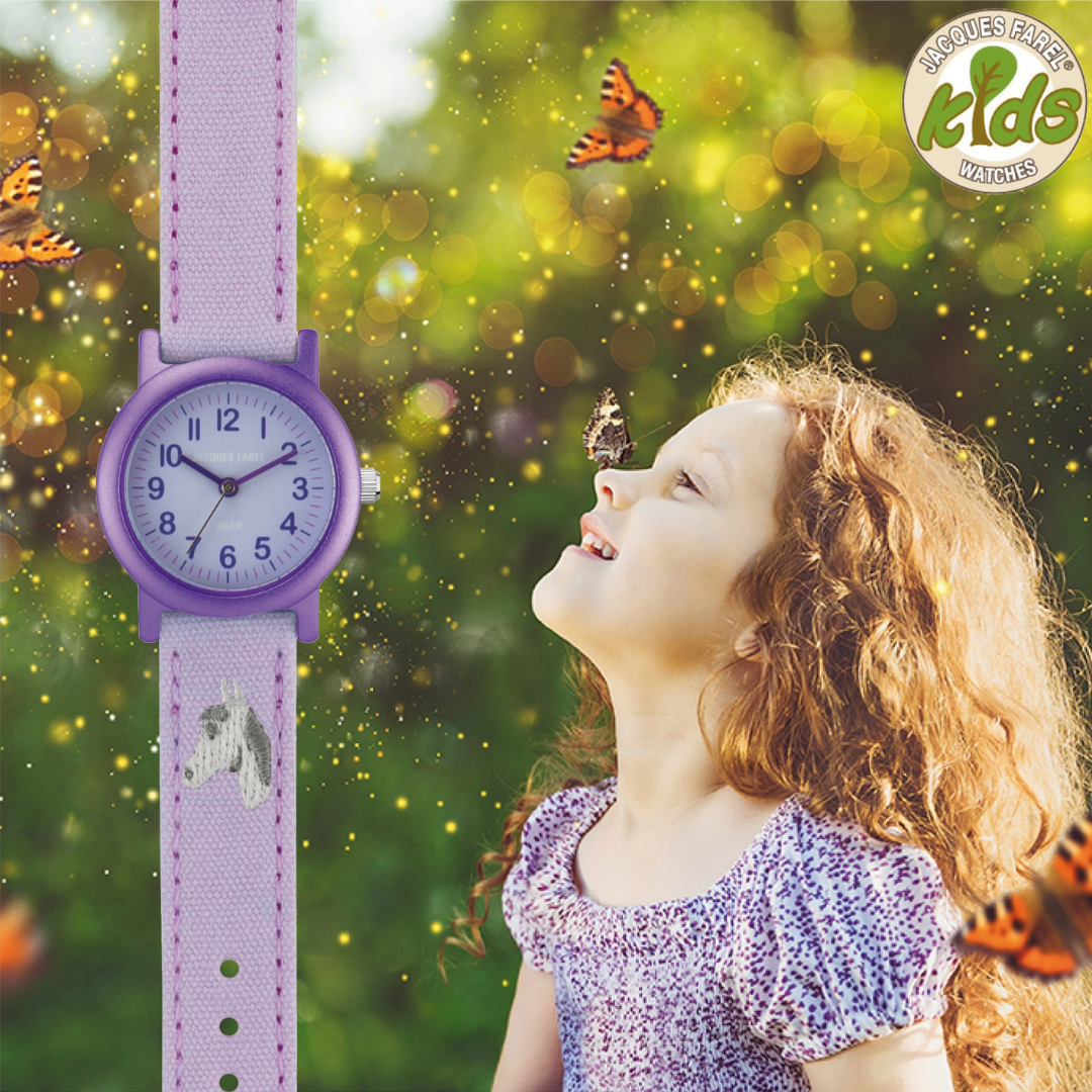 Jacques Farel ECO Children's Watch - Horse - Lilac - CO2 neutral - Bio-cotton - 3 Bar - Adjustable Strap