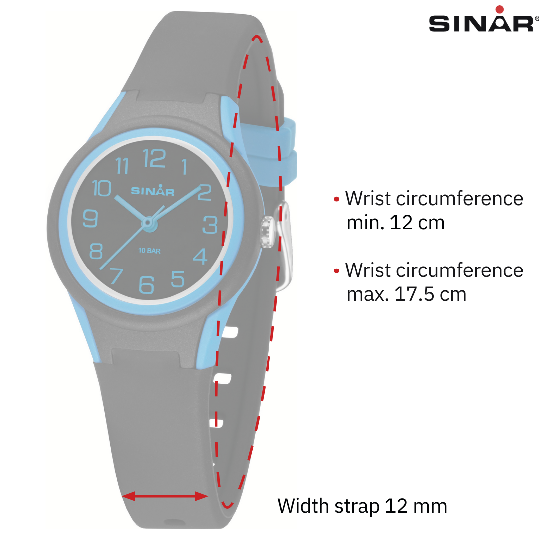 With a case diameter of 29 millimetres and a height of 11 millimetres, the watch fits comfortably on the wrist. The clean and very clear display with coloured contrasting numerals is very easy to read and therefore perfect for everyday school life; 10 bar water resistance for all outdoor adventures or sporting activities. The soft, skin-friendly silicone strap guarantees comfort in any situation. The strap is 12 millimetres wide and suitable for an wrist circumference of 12 to 17.5 centimetres. It is supplied in a SINAR gift box and is therefore ideal as a gift for all occasions such as birthdays, Easter or Christmas.