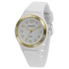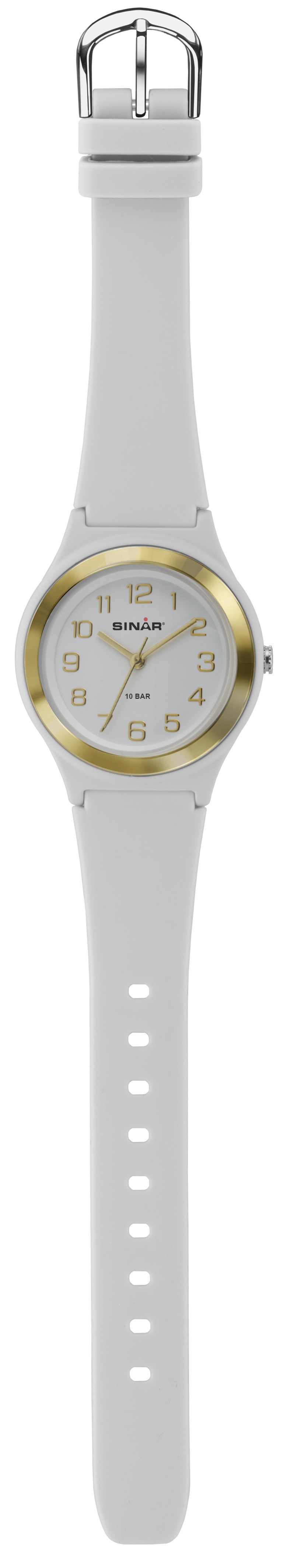 Rarely is a watch as trendy, comfortable to wear and at the same time robust and attractive as this model from the German brand SINAR. The colour combination of white and gold, combined with the gold rim around the dial, make this watch a trendy accessory. The flat watch case and soft, skin-friendly silicone strap ensure that the watch is comfortable to wear.